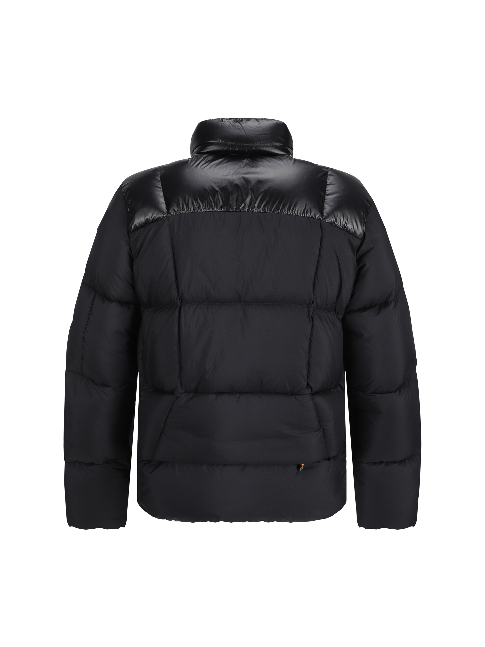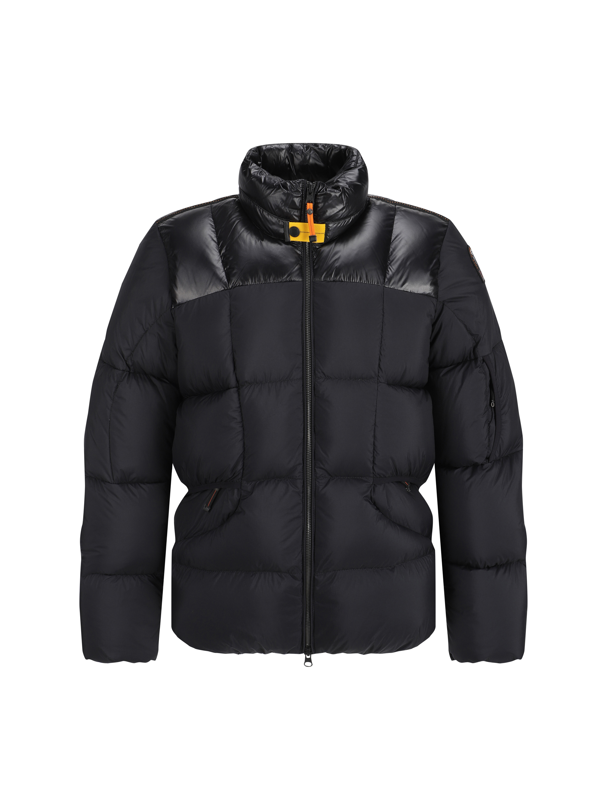 Kodama Down Jacket by Parajumpers, high-neck model, front closure by double-slider zipper, two zippered welt pockets on front, elasticized cuffs, elasticized hem, zippered welt pocket on left sleeve, iconic brand monogram patch applied on left sleeve, padded and all-over quilted design.