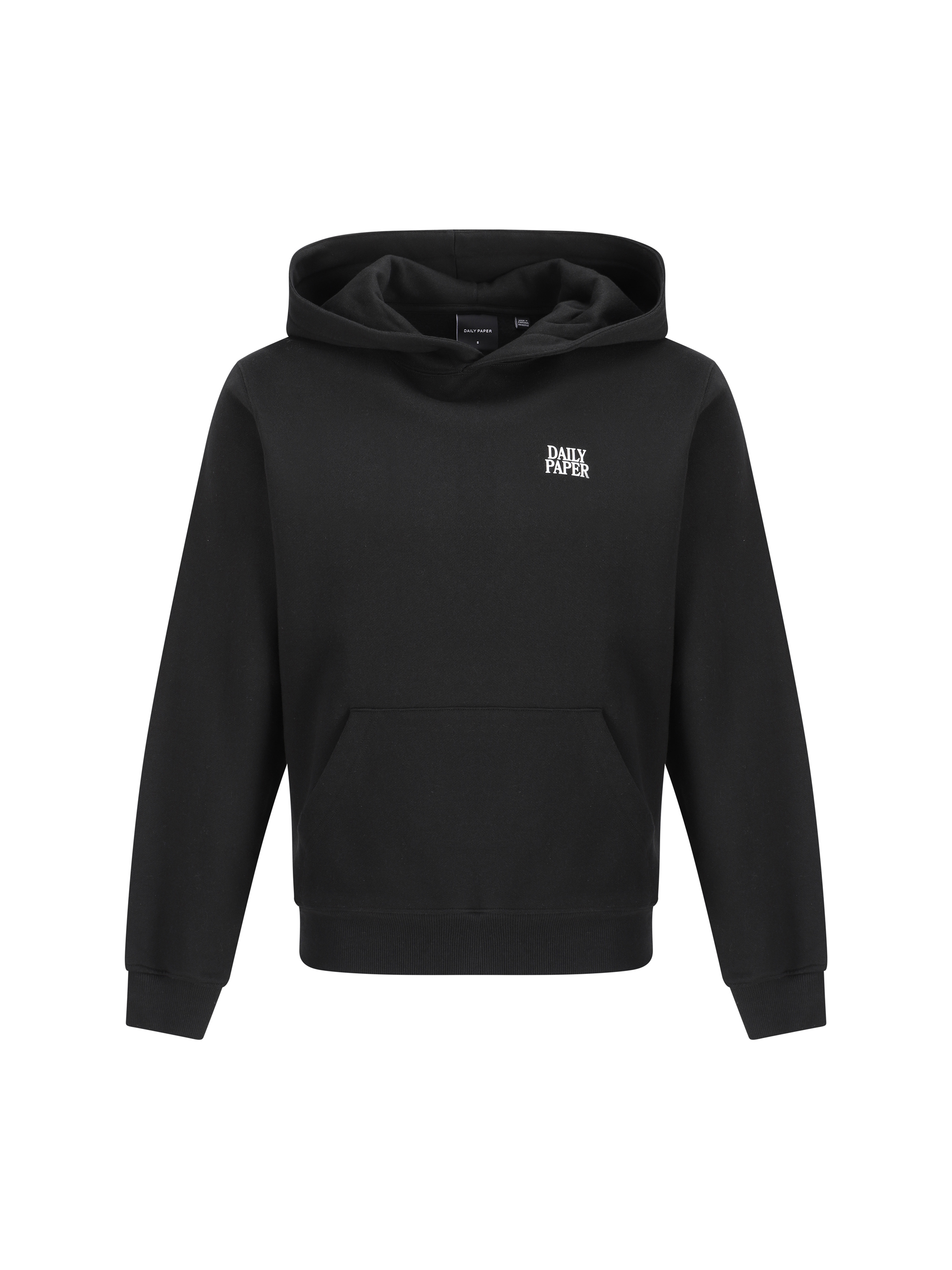 Cotton Smoothie Hoodie by Daily Paper, front kangaroo pocket, iconic brand monogram printed in contrast on front, contrasting printed designs on back, ribbed cuffs, ribbed hem, monochrome pattern, regular fit.