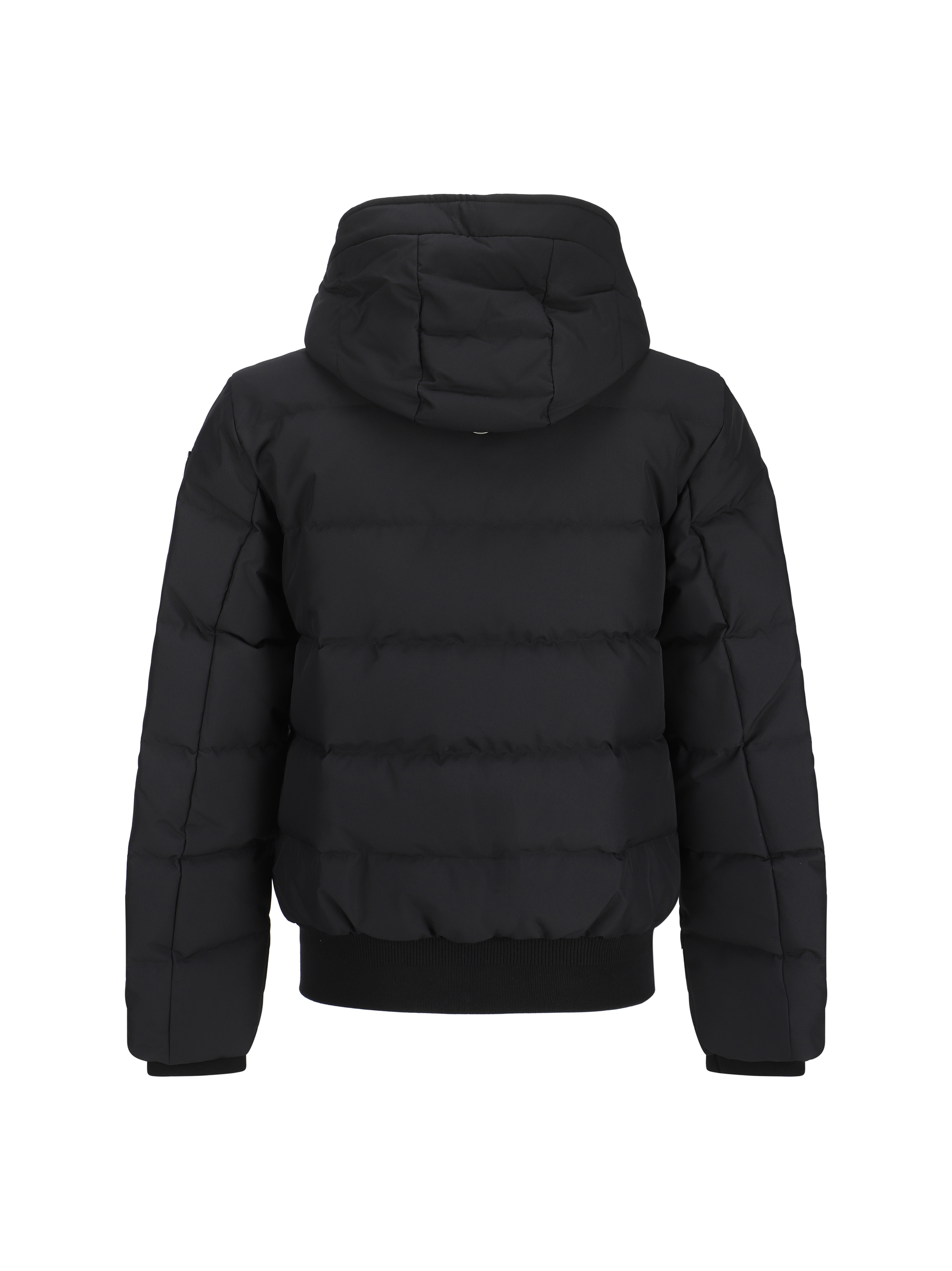 Cloud Neoshear Down Jacket by Moose Knuckles, high-neck model with removable and adjustable drawstring hood, front closure by double-slider zipper, two zippered side welt pockets, two zippered front welt pockets, elasticized hem, brand's iconic logo patch appliqued on sleeve, quilted and all-over padded design.