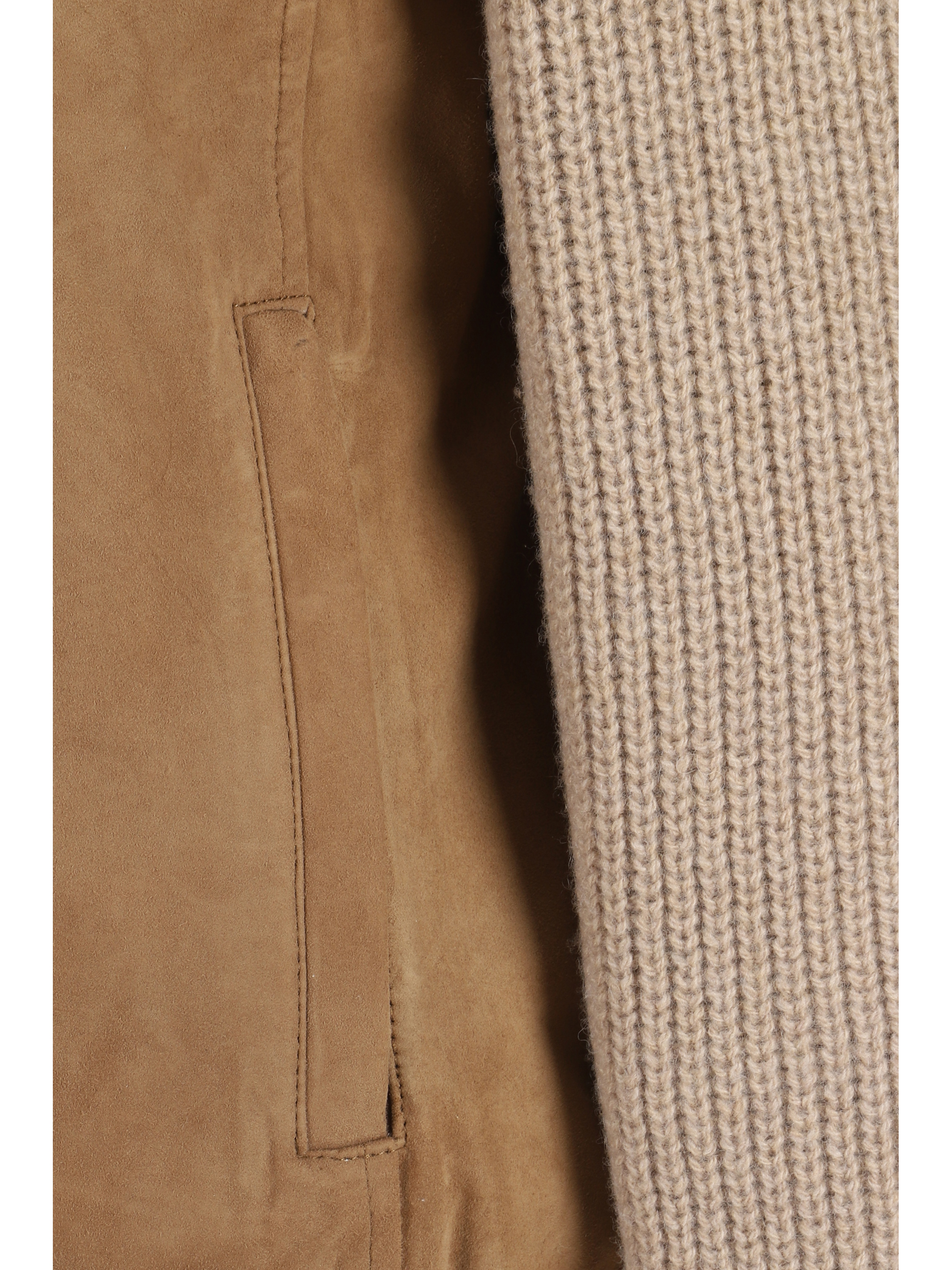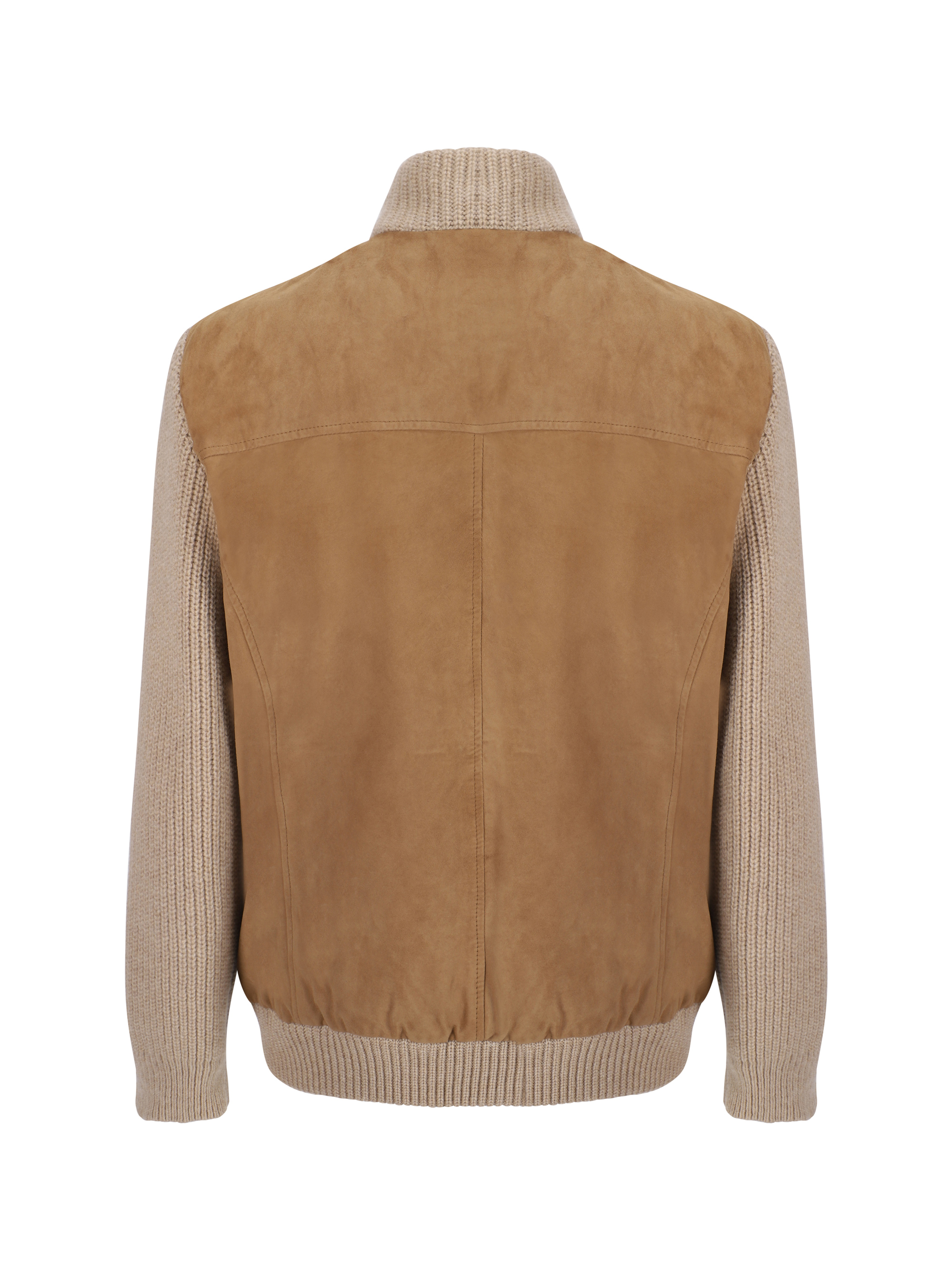 Wool Nicola Jacket by D'Amico, ribbed high collar, suede front and back panel, two zippered side welt pockets, ribbed hem, ribbed sleeves, all-over quilted and padded design, regular fit.
