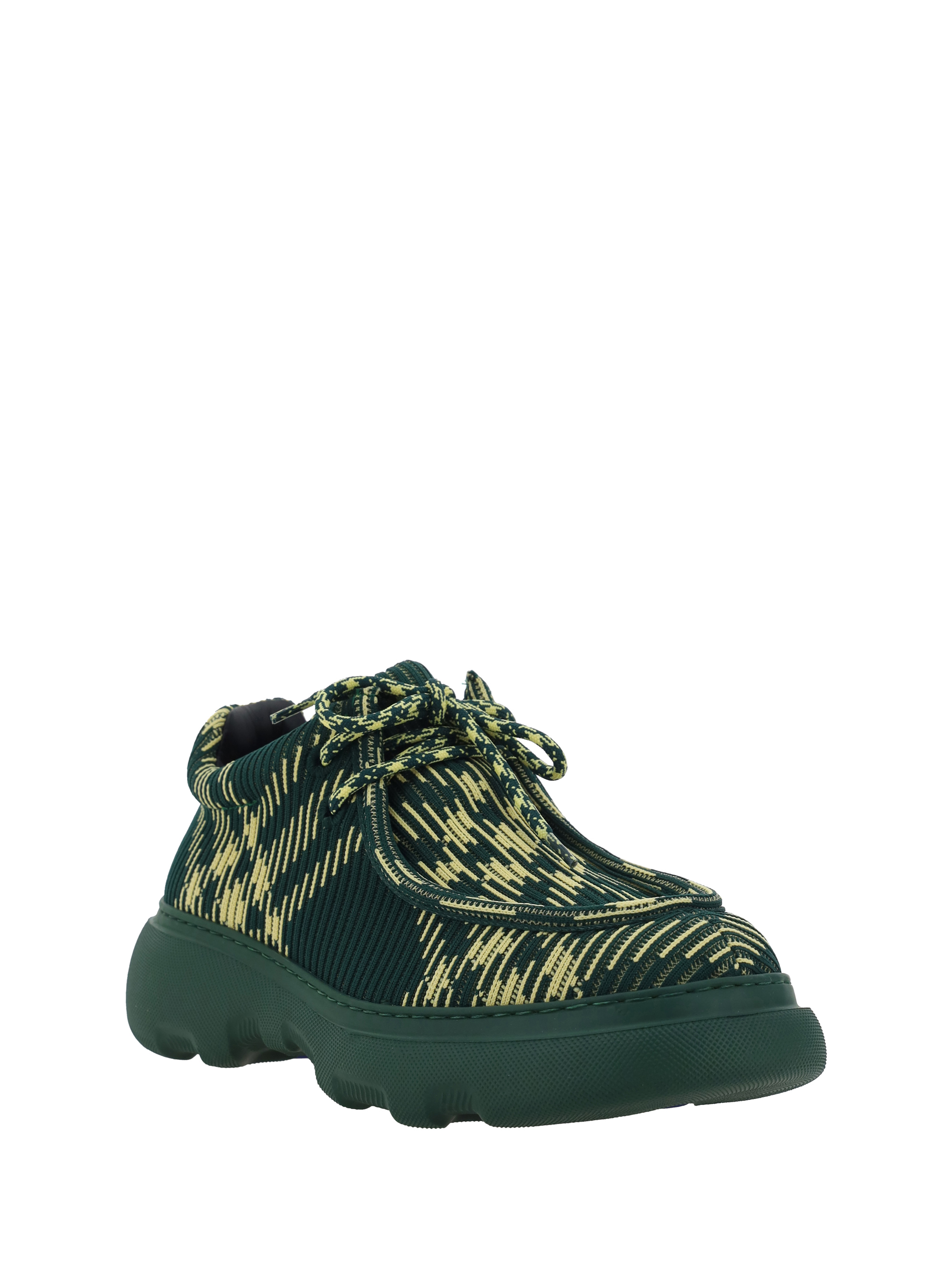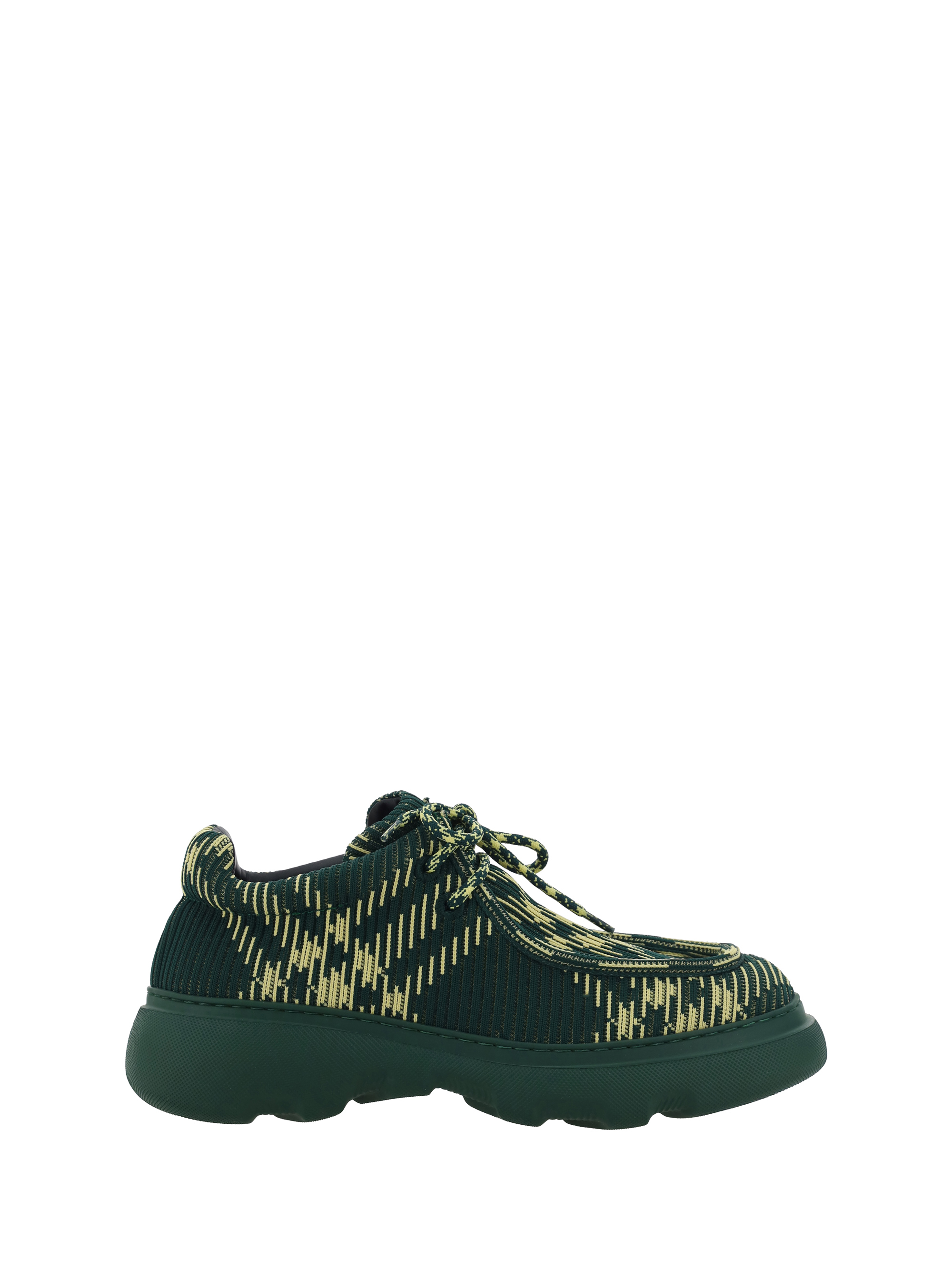 Derby Shoes by Burberry, oversize design, printed fabric upper with iconic all-over Tartan pattern, flat sole, lace-up front closure.