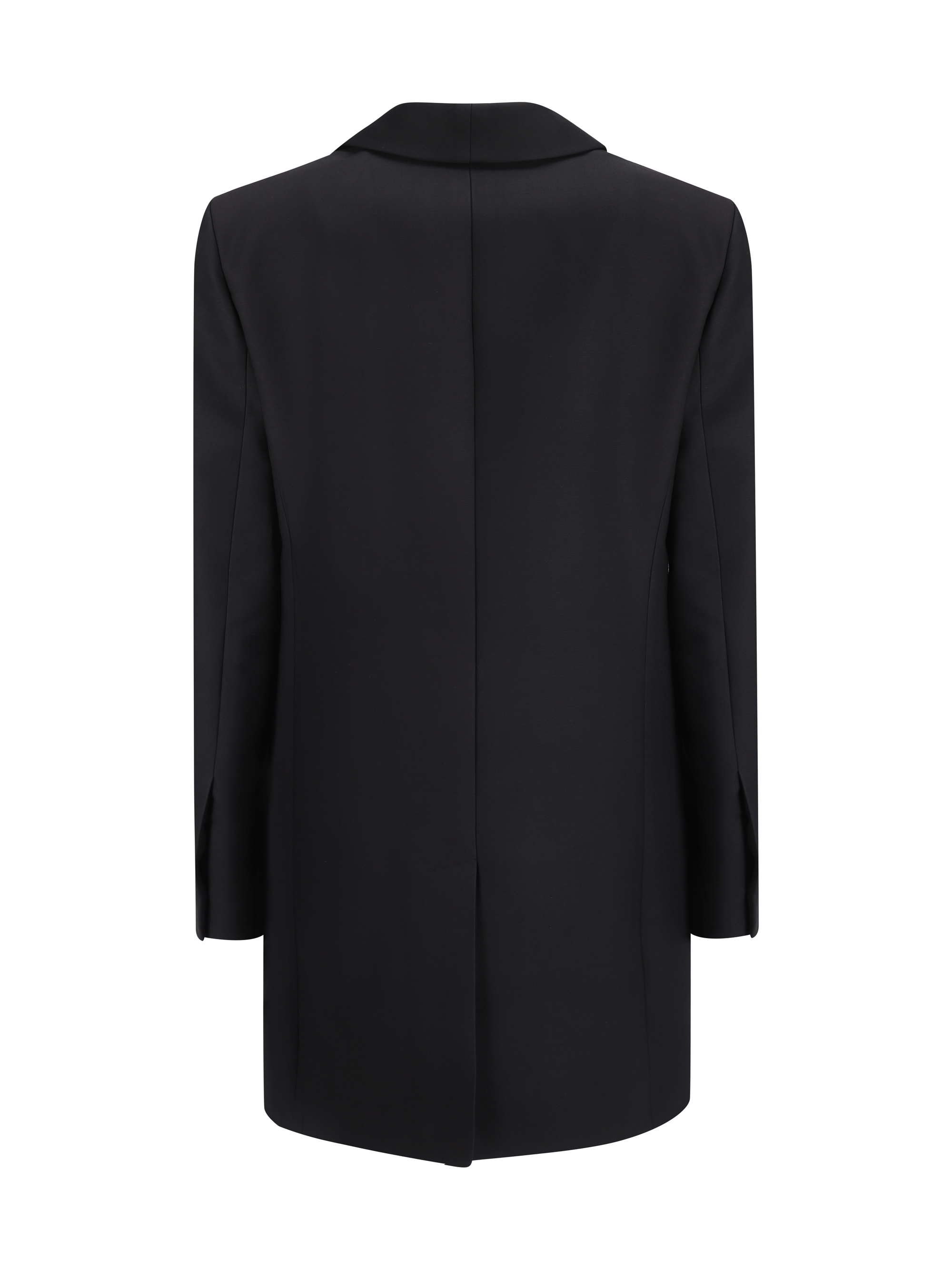 Wool Blazer Jacket by Loewe, long style, shawl lapels, a single-button front closure, two front welt pockets, a side slit, a monochrome pattern, and a regular fit.