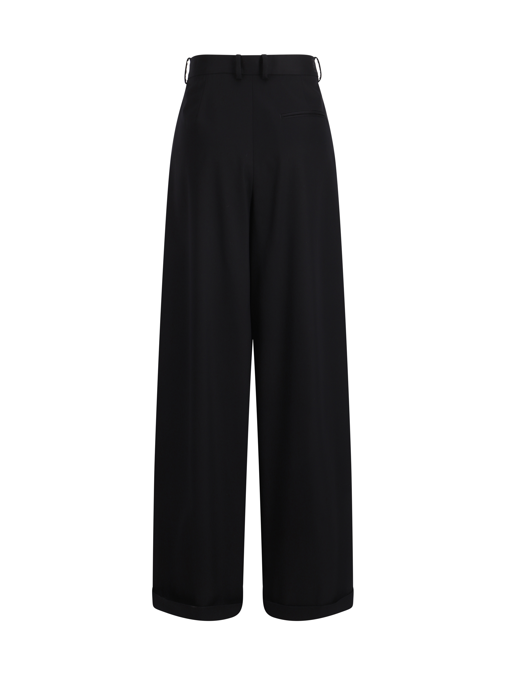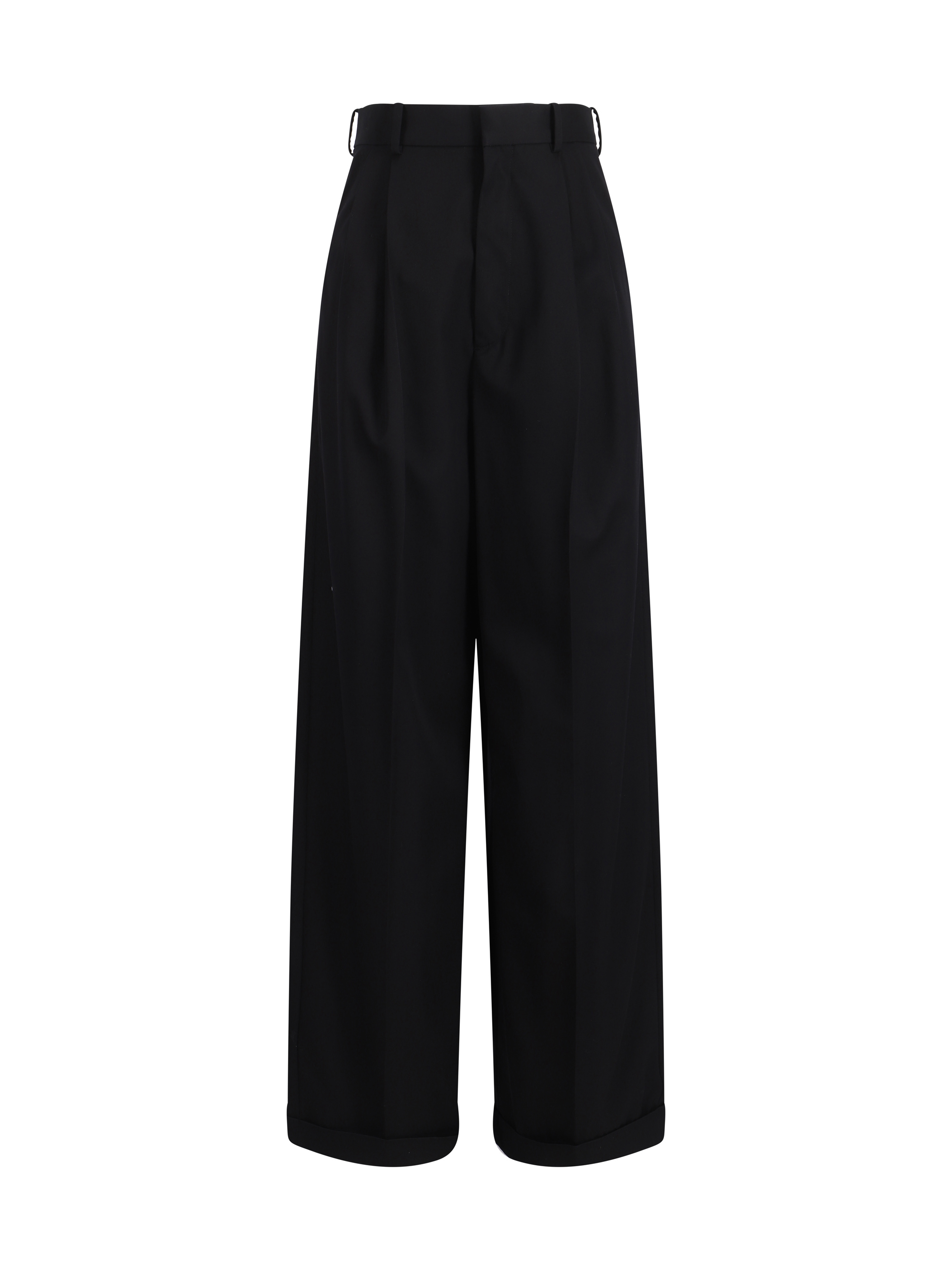 Cotton pants from Loewe, palazzo style front zipper and hook-and-eye closure, two side welt pockets, two welt pockets, iconic band monogram applique on back, turned-up hem, monochrome pattern, over fit.