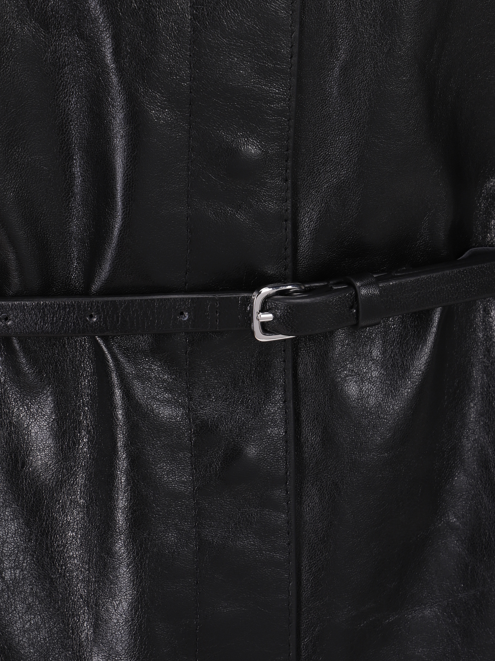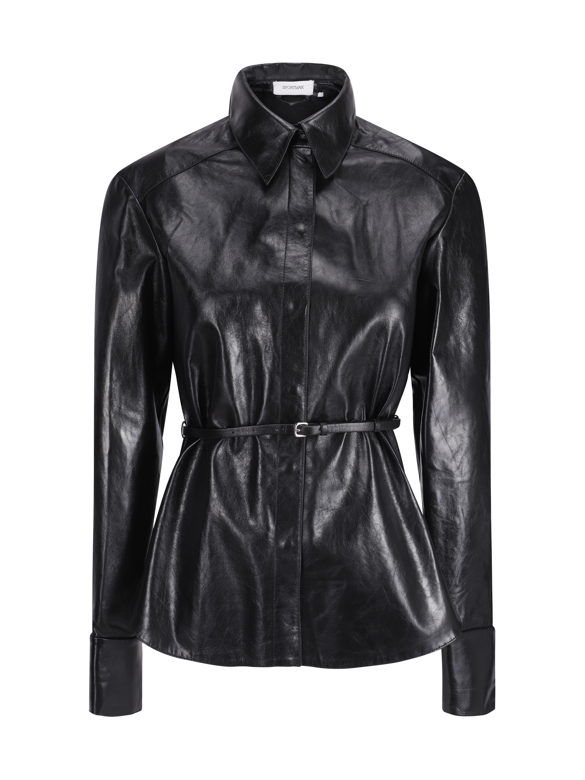 Larix Leather Jacket by Max Mara Sportmax, classic collar, front snap closure, belt loops at waist, monochrome pattern, regular fit.