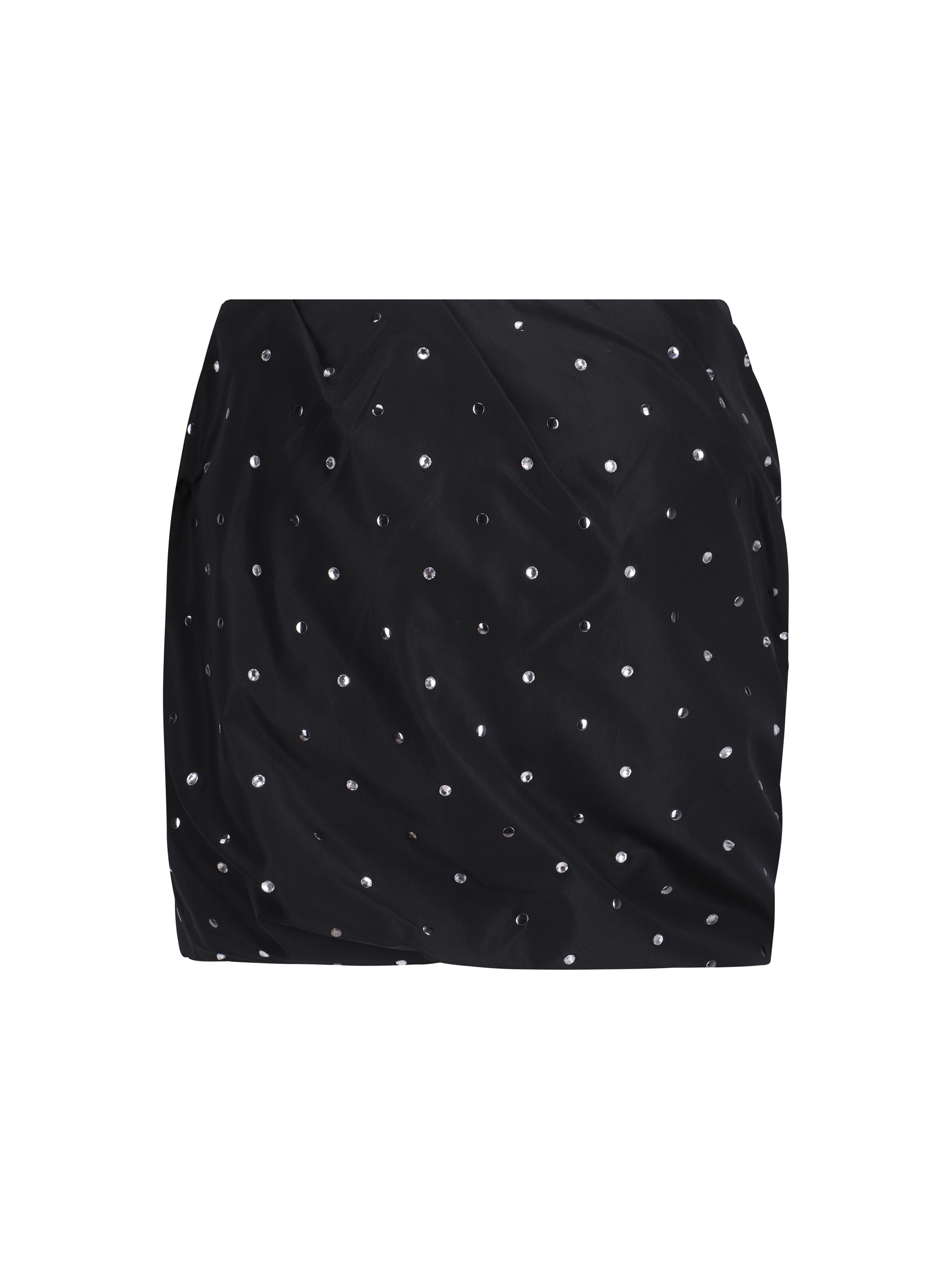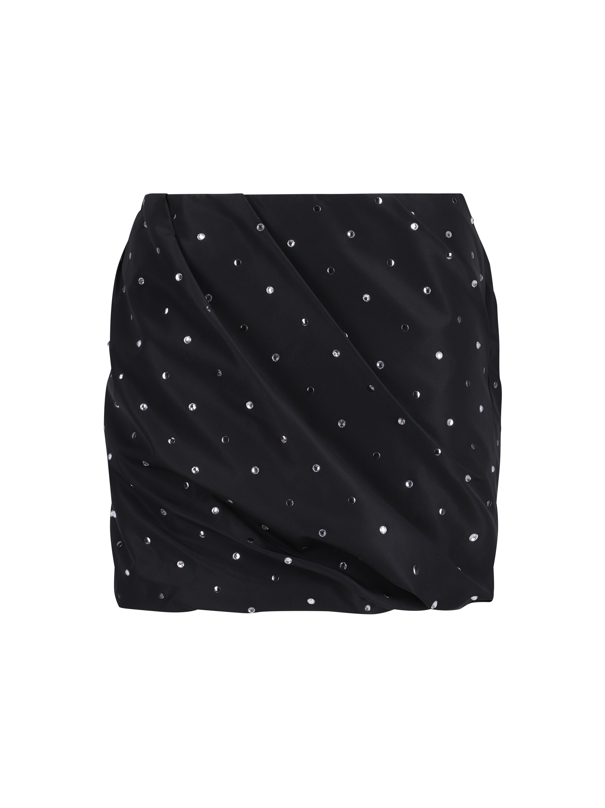 Mini Skirt by Pinko, side zipper closure, draped design, all-over applique shiny jewel detail, monochrome pattern, fitted fit.