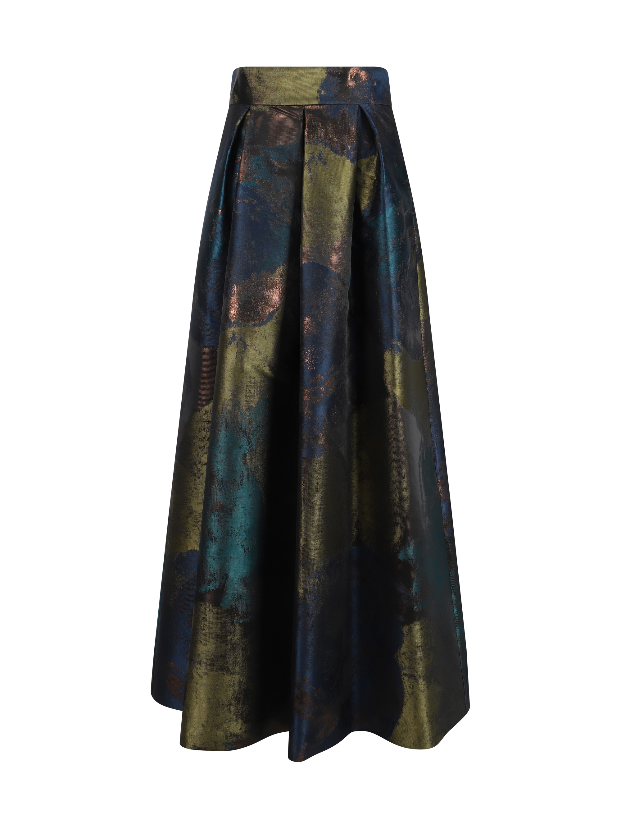 Long Skirt by Sara Roka , full-length pattern, side zipper closure, two side welt pockets, multicolor pattern, regular fit.