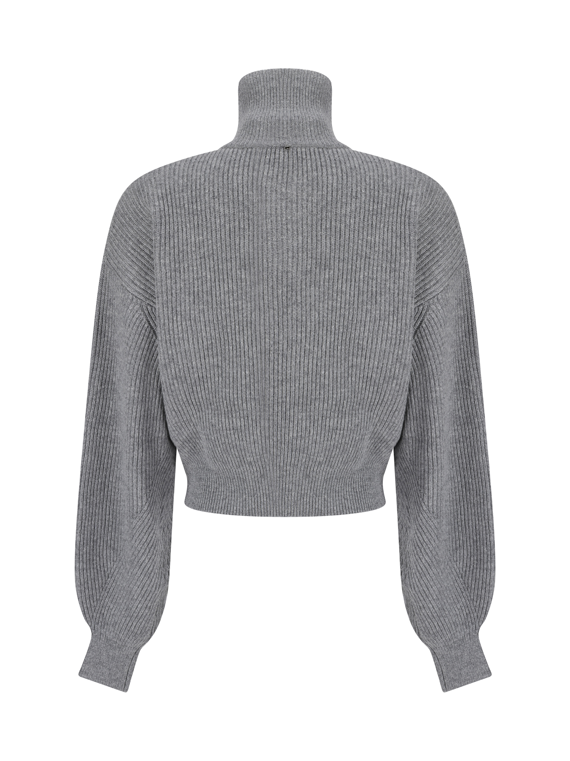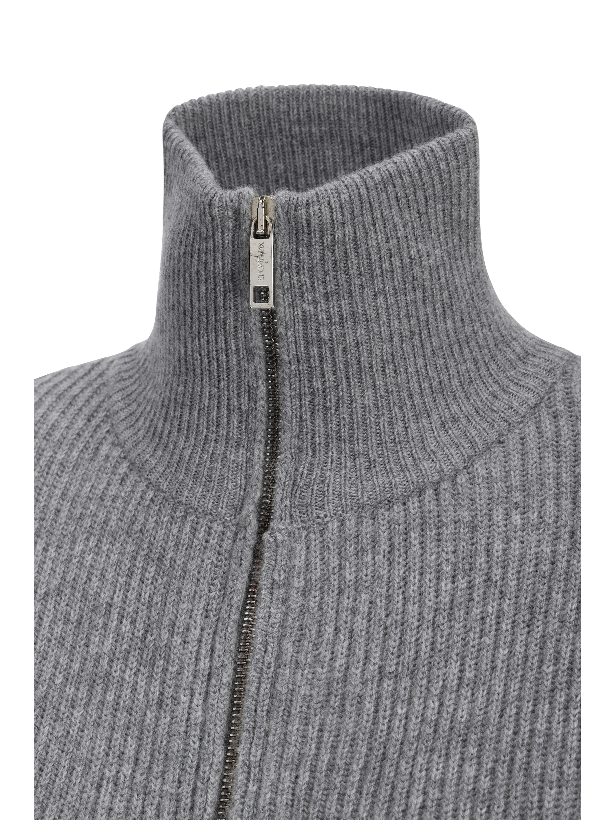 Wool Leisure Cardigan by Sportmax, turtleneck design, ribbed design, double-slider front zipper closure, ribbed hem, ribbed cuffs, monochrome pattern, regular fit.