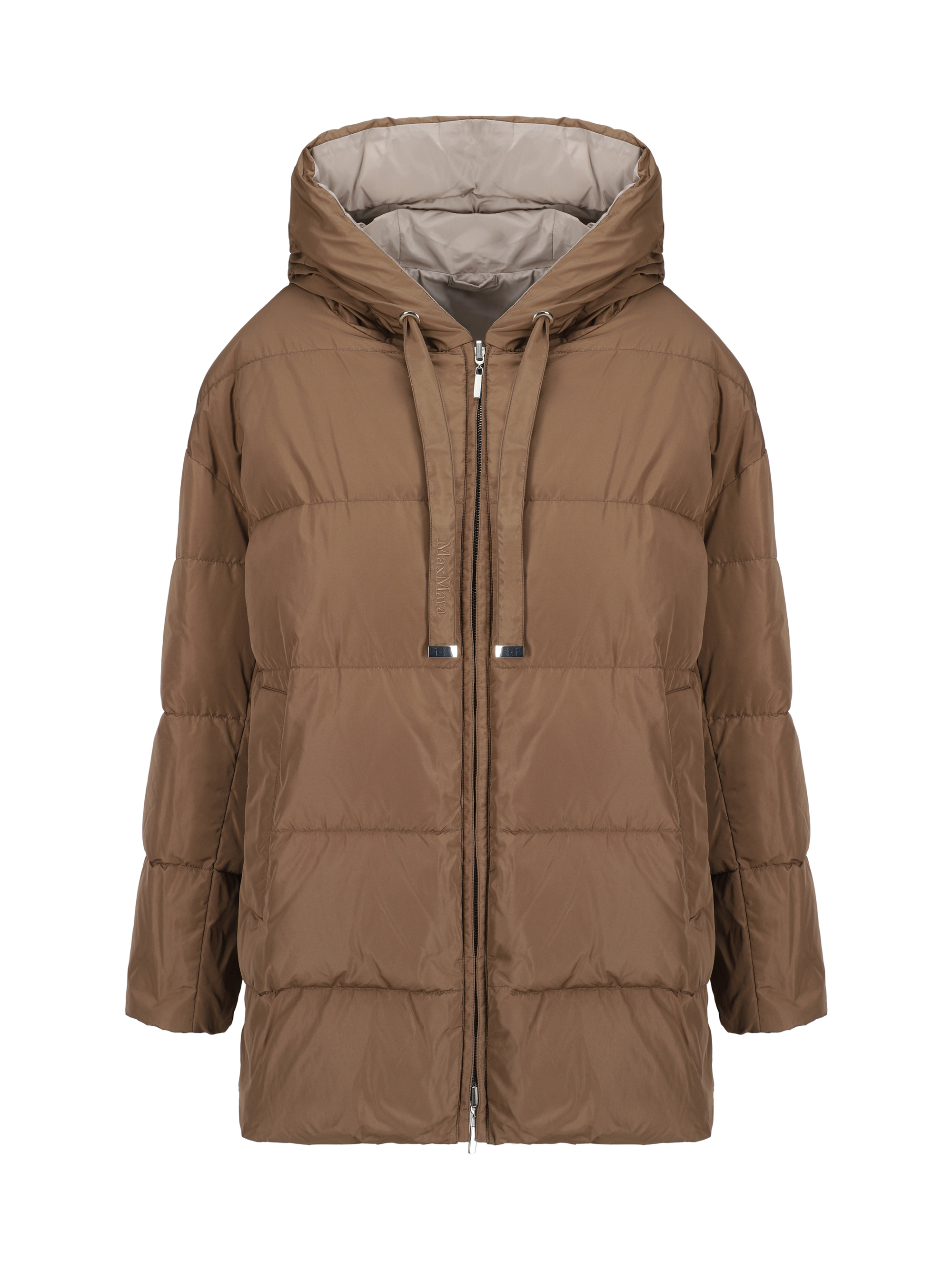 Taffy Down Jacket by Max Mara The Cube, high collar and drawstring hood model, front closure with double-slider zipper, two side welt pockets with flap, two side slits, all-over quilted and padded design, regular fit.