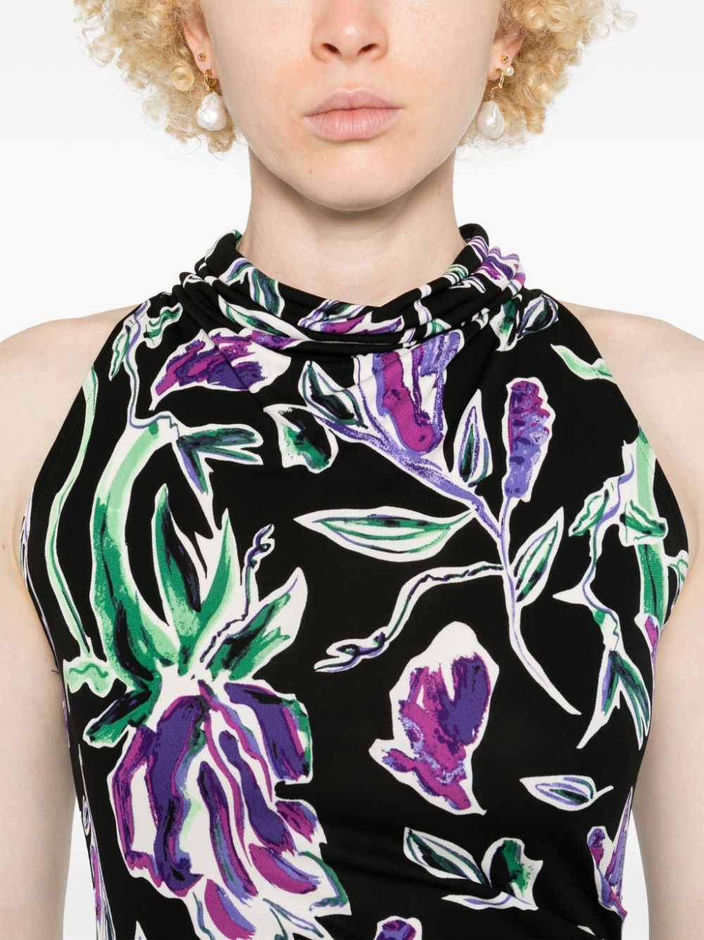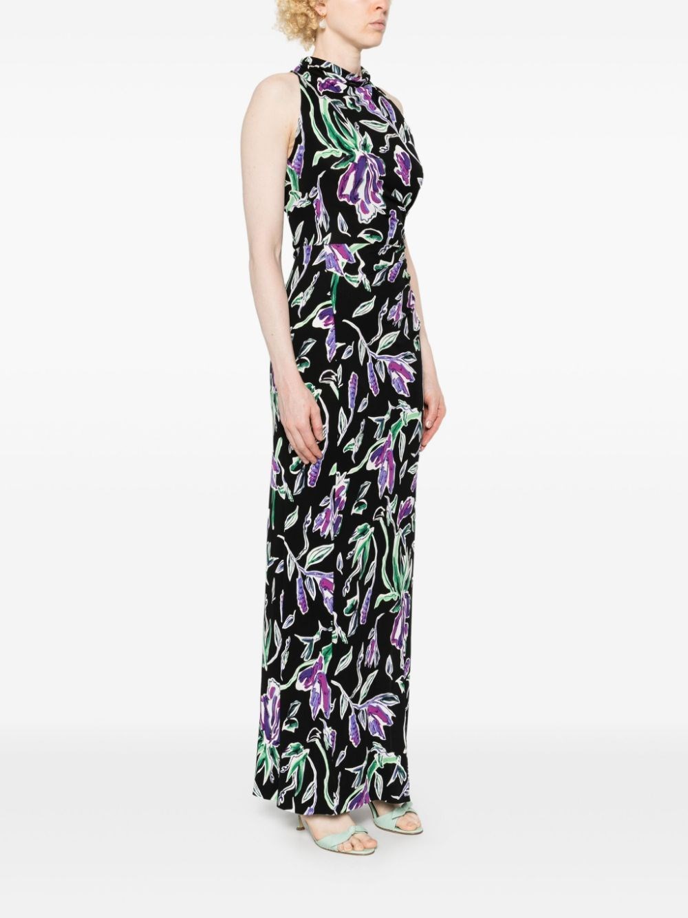 SKU B4509710 "Libby" long dress in soft viscose stretch crepe by Diane Von Furstenberg with purple tulip motif, halter neckline with buttons on the back of the neck, side pleats on the side, concealed zip. COD. DVFDS2S047TLFVL