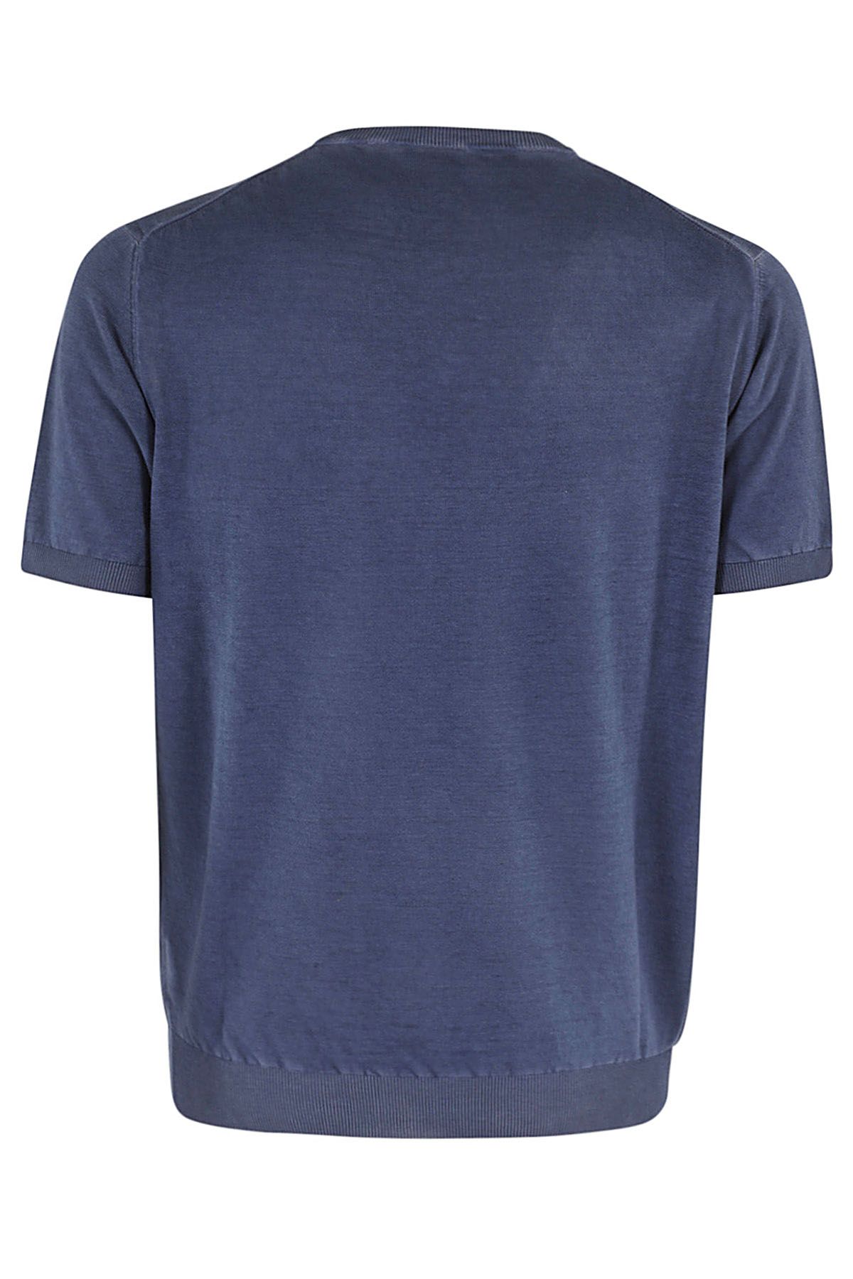 - Sweater- Kangra- Blue color- Cotton plain knit fabric- Crew neck- Short sleeve- Ribbed trims- Regular fit