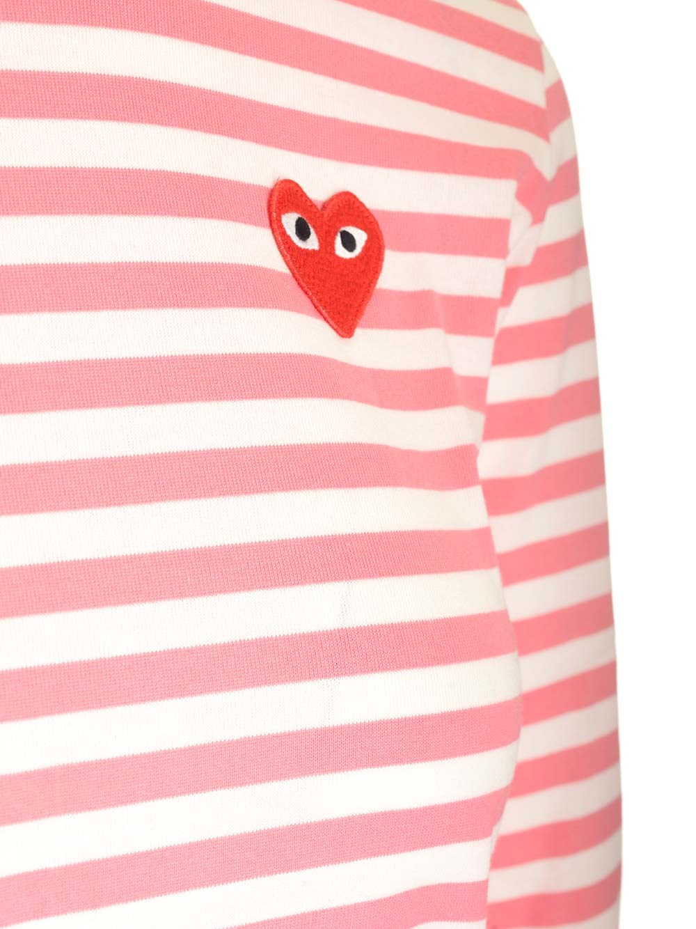 SKU B4110765 Long sleeve crew neck t-shirt with white and pink stripes with small red heart applied COD. P1T2773-PNK X WHT