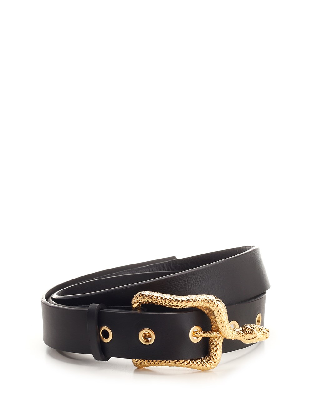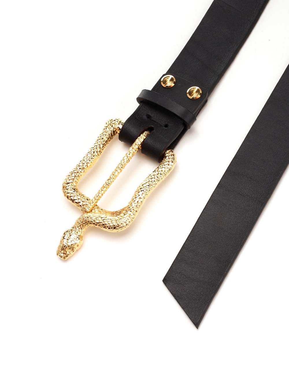 SKU B3504472 "Marasso" belt in recycled black leather, buckle with golden snake from Laboratorio Riciclo Pelle exclusively for Al Duca D'Aosta. COD. LRPDDMVG001NDEF