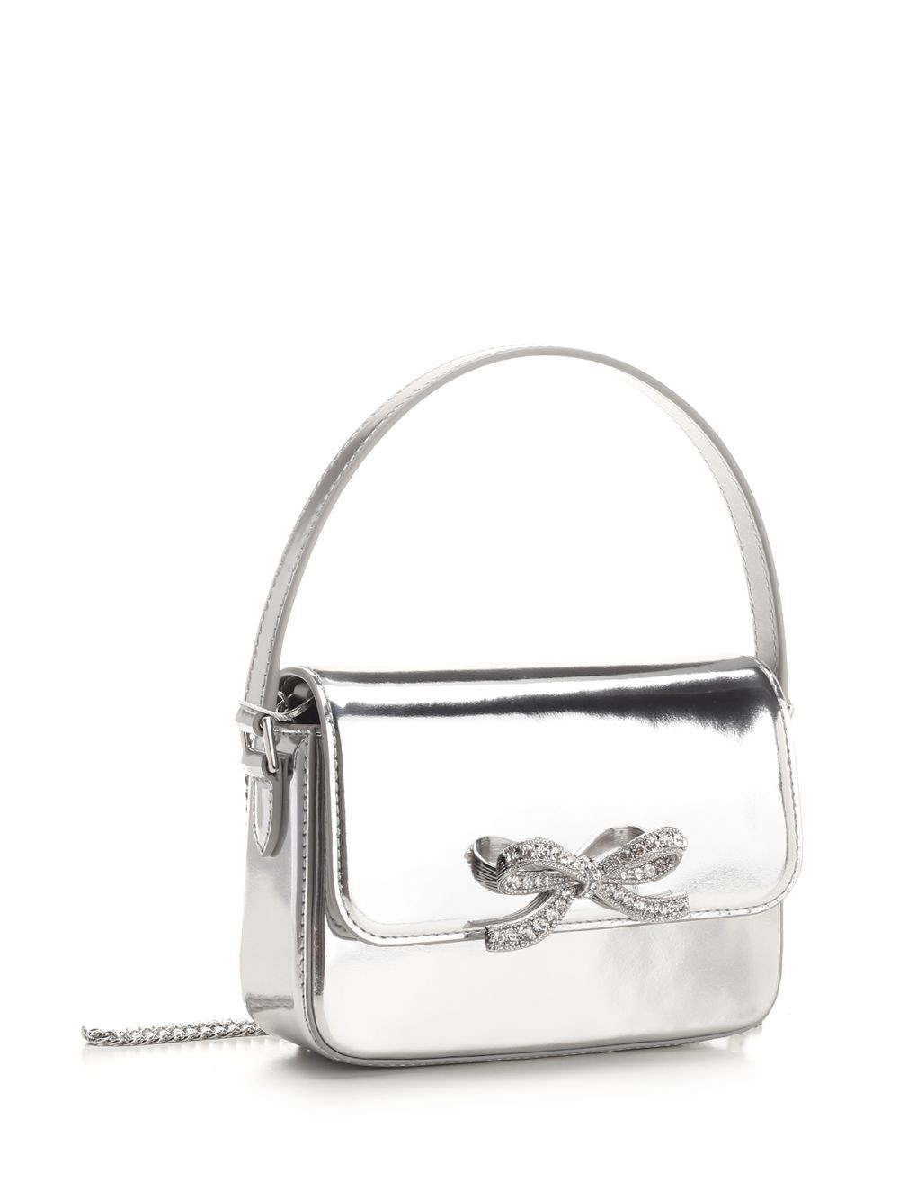SKU B4504645 Micro silver leather bag from Self-Portrait, with diamond bow, magnetic flap closure and removable shoulder chain. COD. PF24-309S-SILSILVER