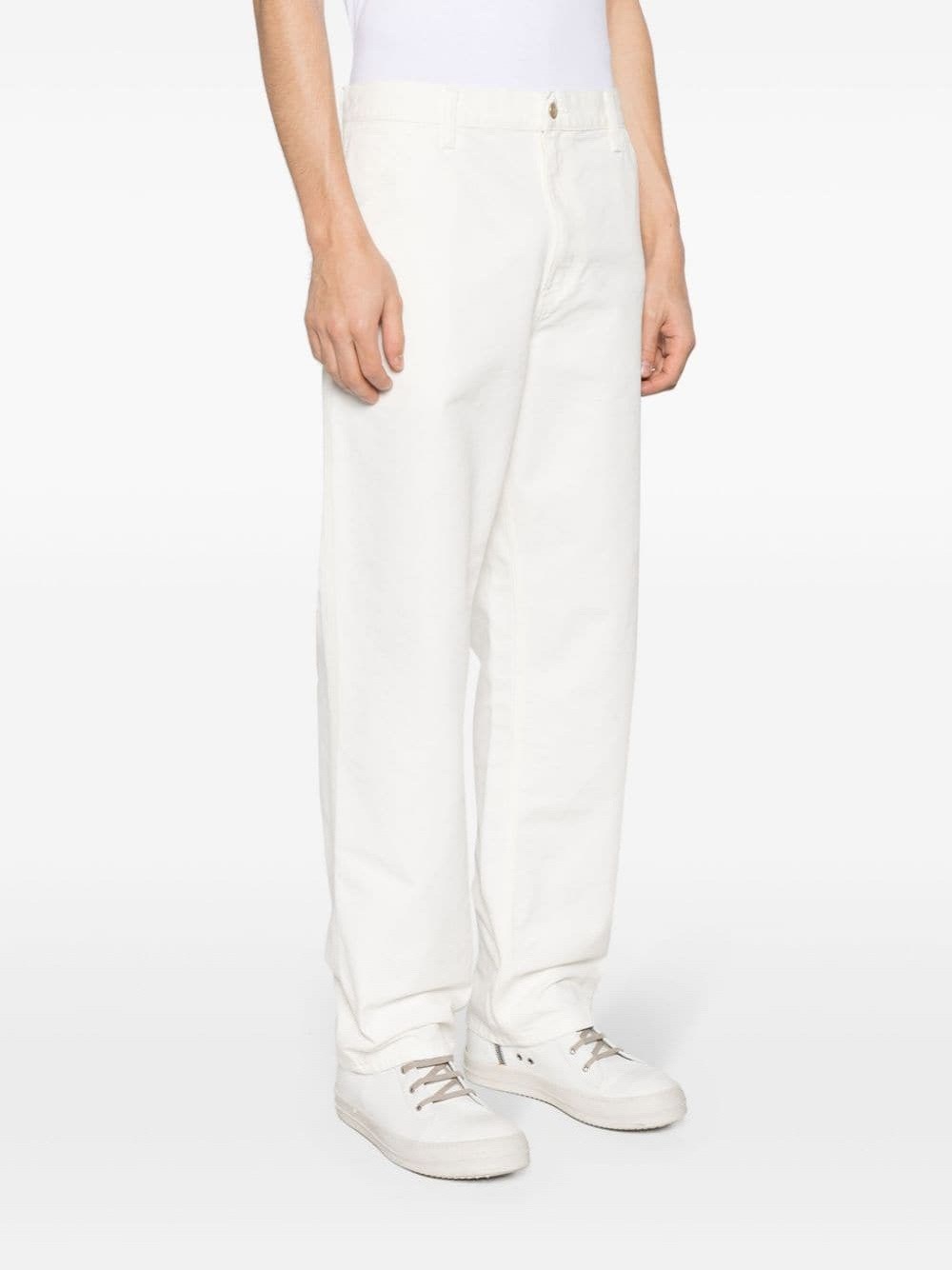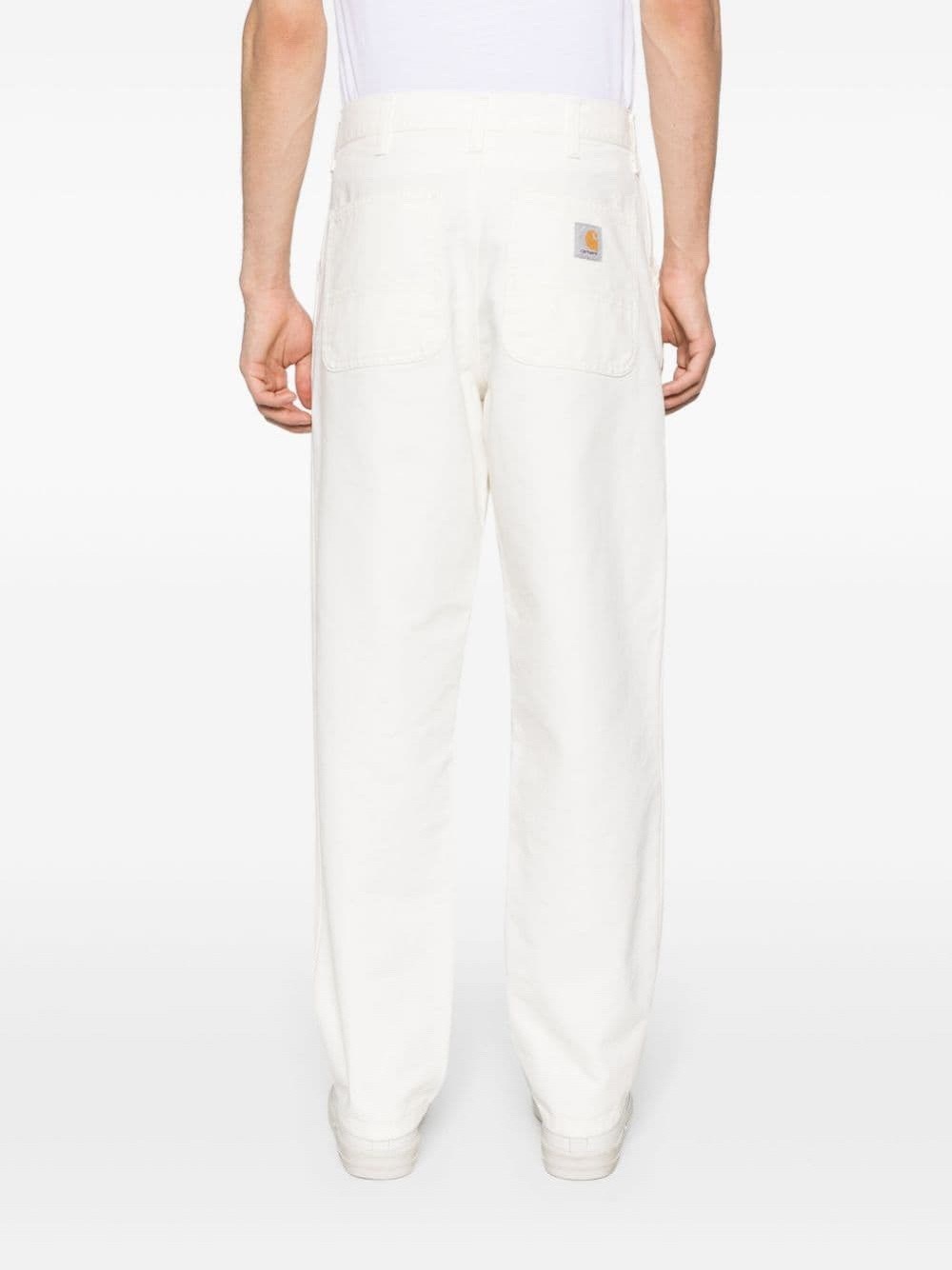 SKU B4108827 White "Simple Pant" straight fit jeans in Dearborn canvas by Carhartt Wip with triple stitching, zip fly closure, five pockets and logo on the back. COD. I031220D6.02.32