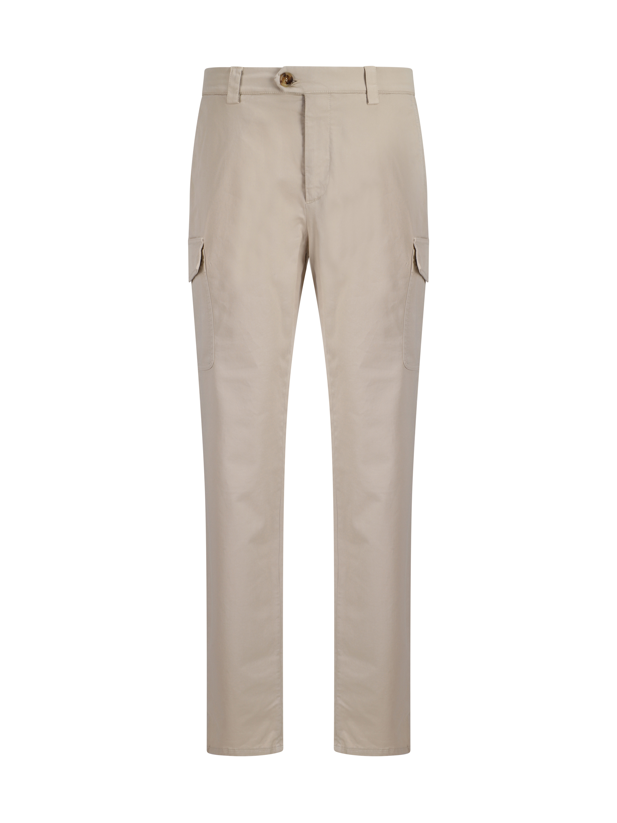 Cotton Cargo Pants by Brunello Cucinelli, front button and zipper closure, two side slash pockets, two welt pockets with flap at back, waistband loops, two cargo pockets on side panels, monochrome pattern, regular fit.