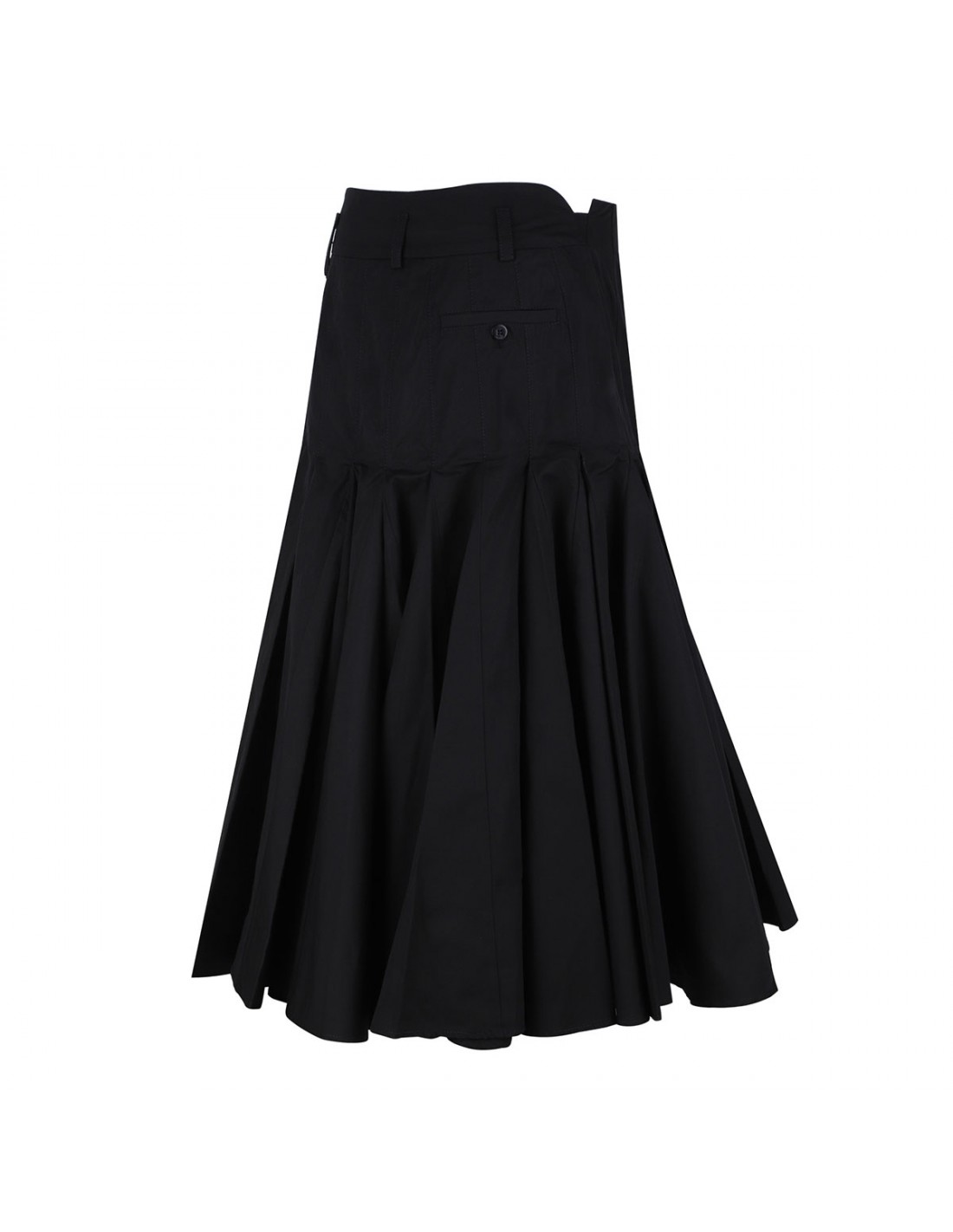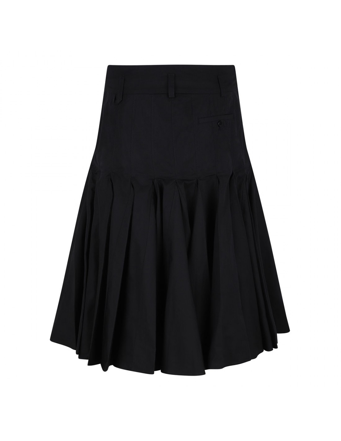 Black cotton poplin The Agave skirt from Jacquemus featuring flared silhouette below the hip with tulle lining, high waist, below-the-knee length, stitched pleats, concealed zip and button fastening, J belt loop.