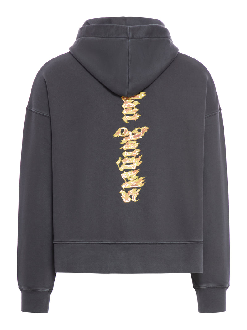 -black -cotton -palm print -logo print on the back -hood -drop shoulder sleeves -long sleeves -front kangaroo pocket -ribbed hem and cuffs