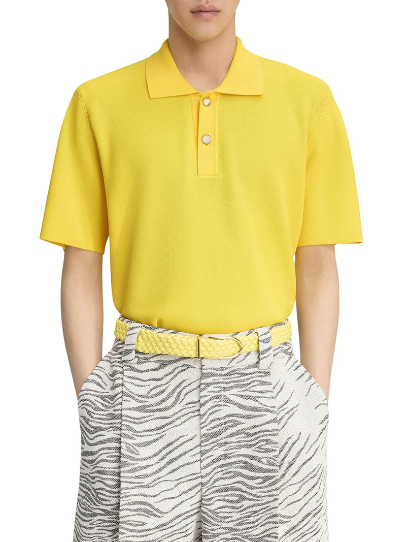 Knitted polo - Loose fit - Pique cotton - Structured elbow-length sleeves - Polo collar - Silver metal buttons with engraved logo - Knitted logo on the back