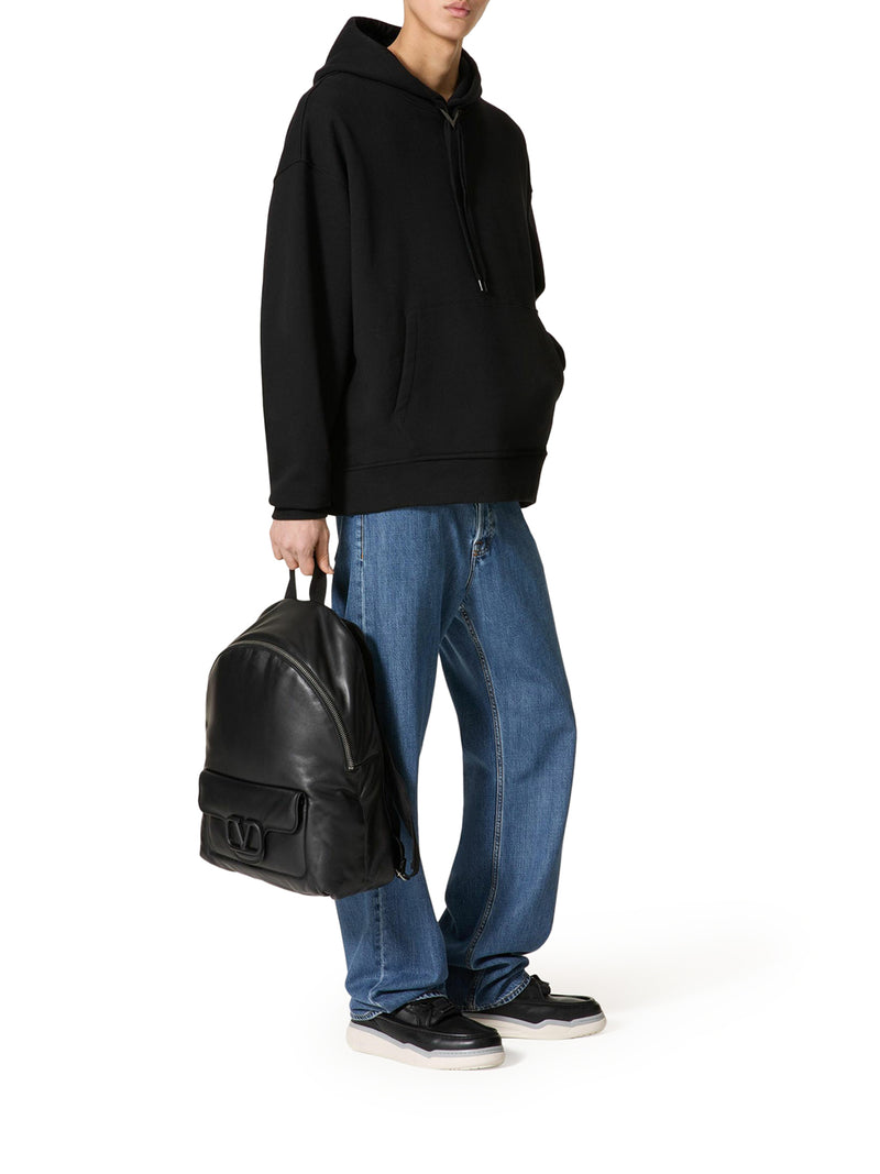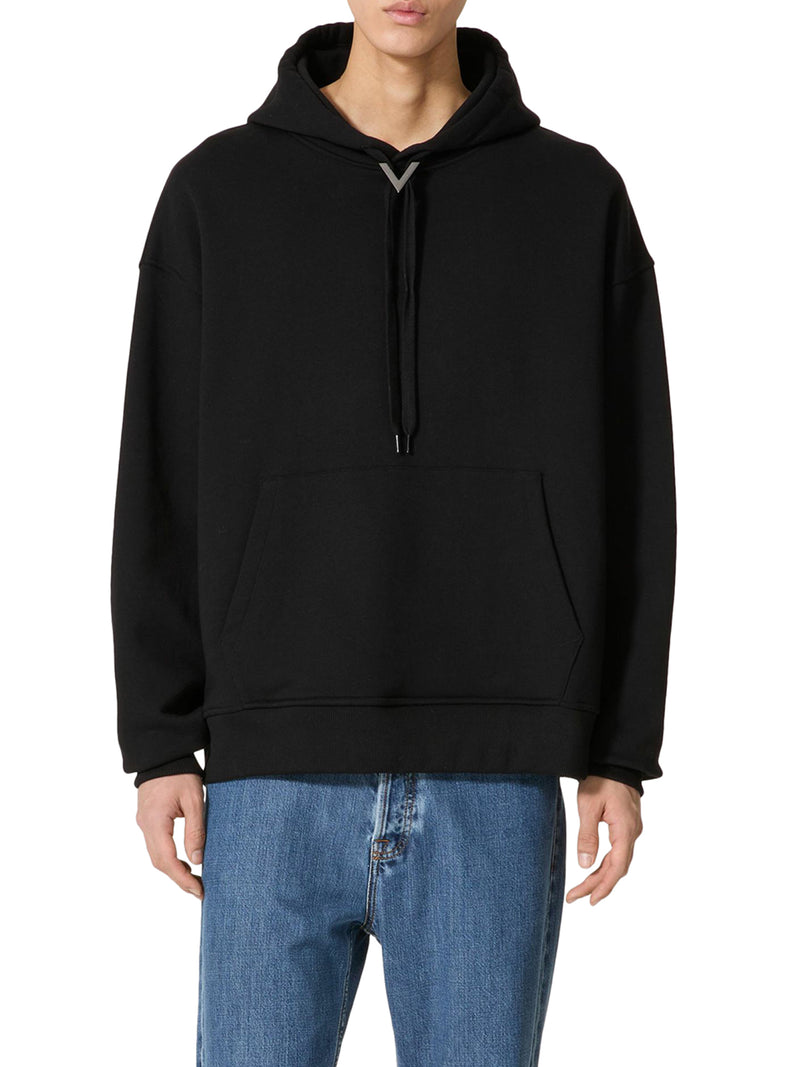 Valentino cotton hoodie with metallic V Detail - Semi-over fit - Metallic V Detail as drawstring fastening - Ribbed elasticated trims - black
