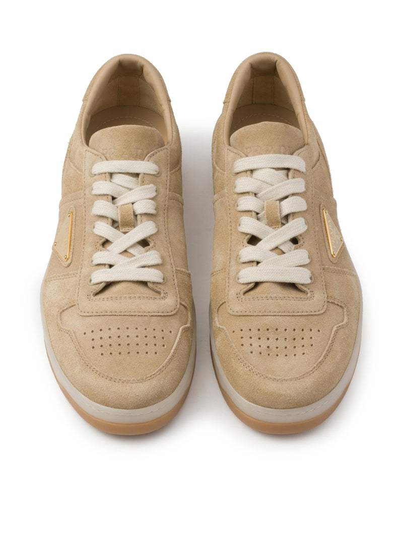 -With metal loops and cotton laces -Upper with enameled triangle applied on the upper -Prada Milano logo embossed on the tongue -Lightweight box sole with embossed side logo -Sole height 0.35 mm -Removable insole covered in leather