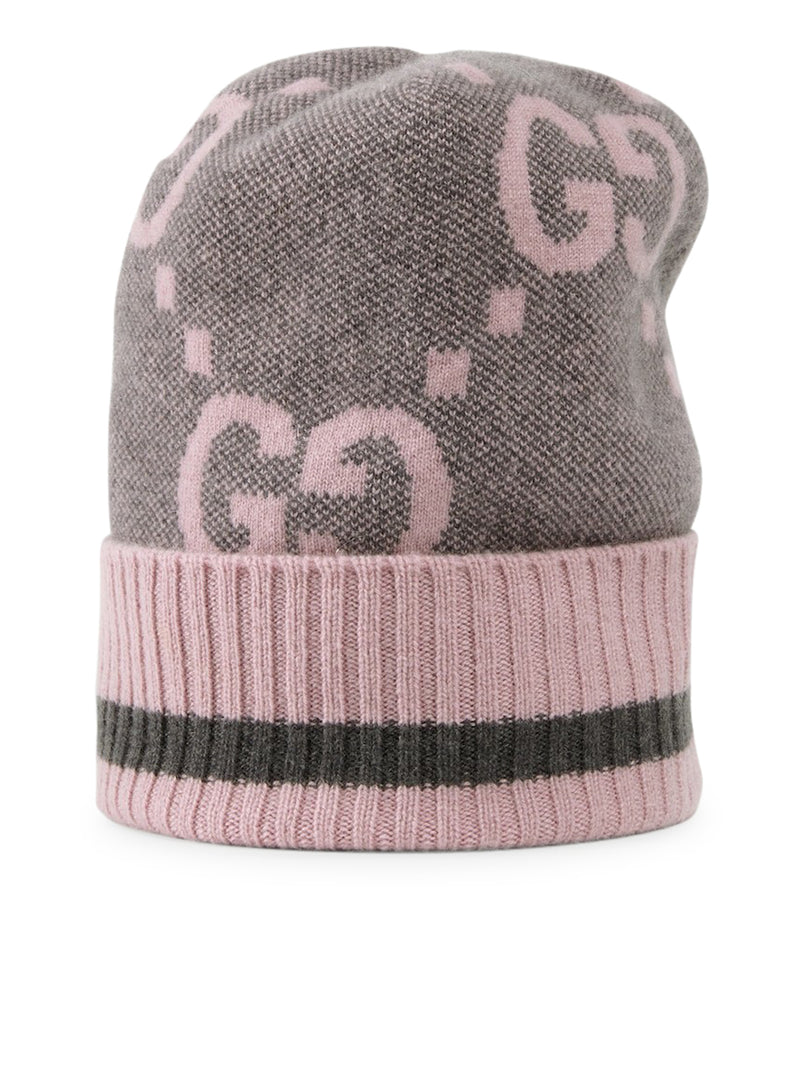 -Beige and dark brown cashmere with GG motif -Dark brown trim with beige stripe details