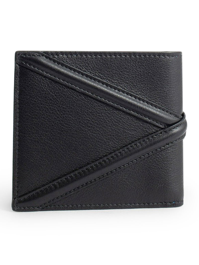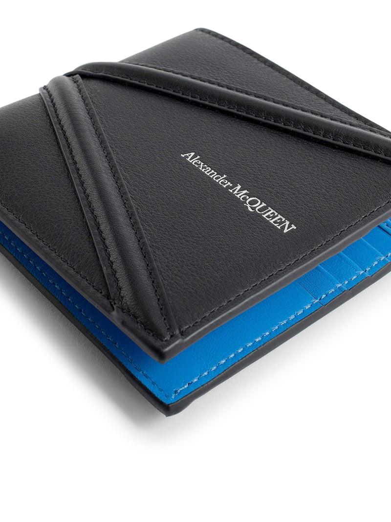 -Black -Calfskin -Panelled design -Foldable design -Logo print on the front -Internal card slots -Note compartment