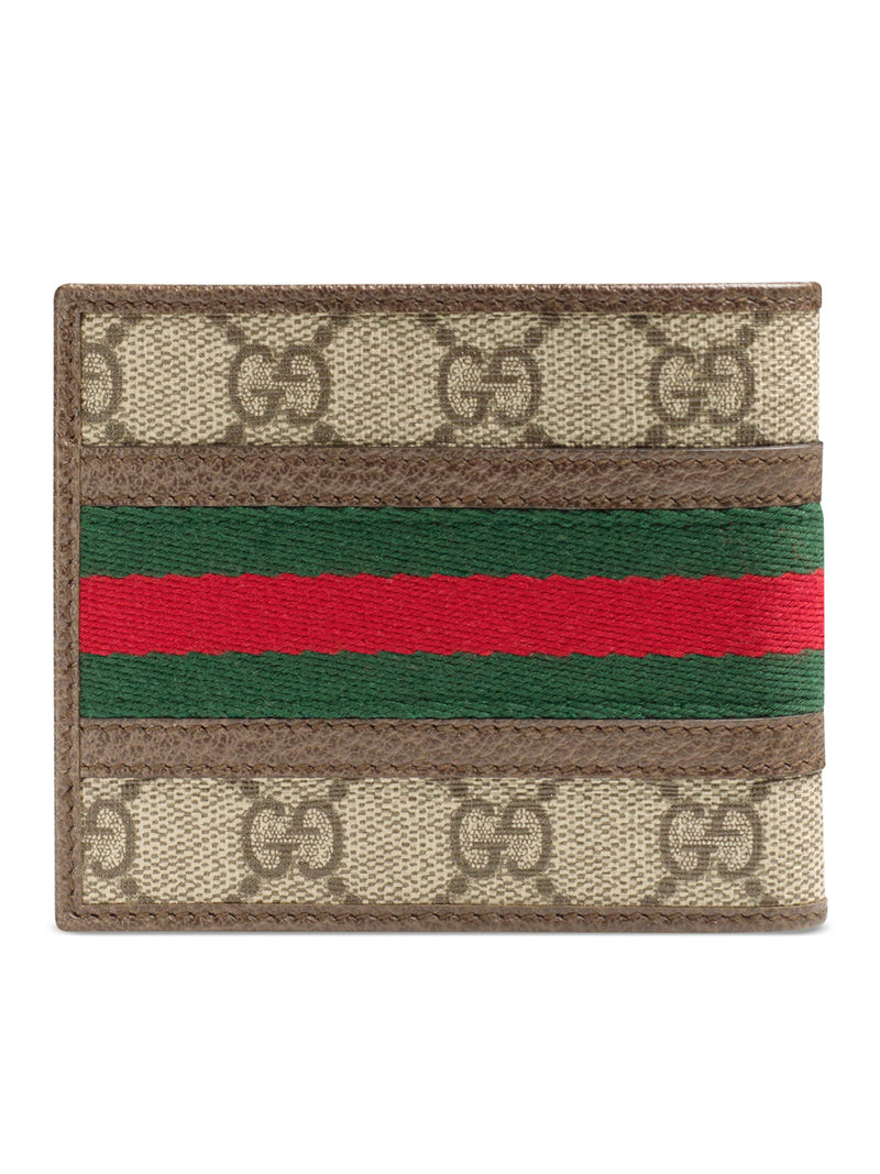 -Beige and ebony GG Supreme fabric, a material with low environmental impact, with brown leather trim -Green and red Web ribbon -Antique gold-tone hardware -Double G -Eight card slots and two bill compartments -Weight: approximately 0.7kg -Open: L 21 cm x H 9 cm -Closed: L 11 cm x H 9 cm