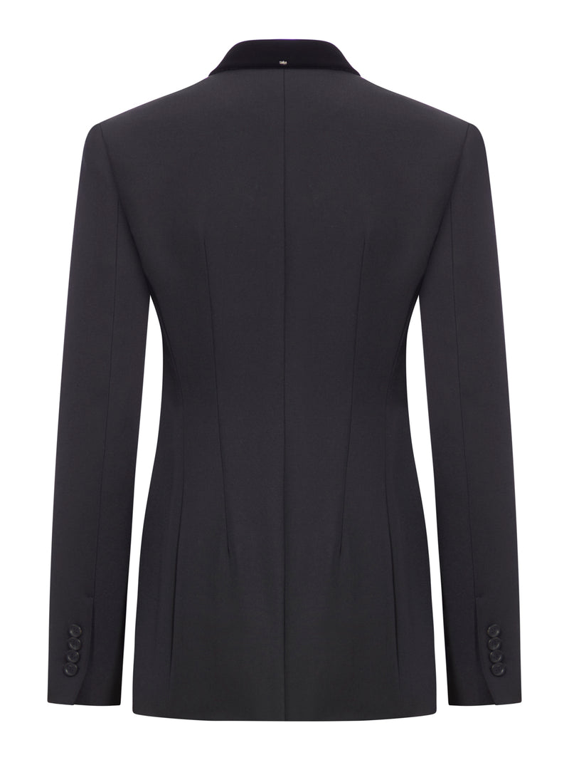 -CLASSIC VELVET REVER IN CONTRASTING VELVET -HIDDEN SNAP BUTTON CLOSURE -SIDE WELT POCKETS -FRONT POCKET -BUTTONED CUFFS -BLACK