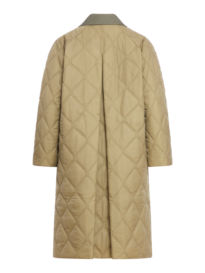 -quilted padded technical fabric -applied pockets -long sleeves -front closure with concealed buttons -contrast collar