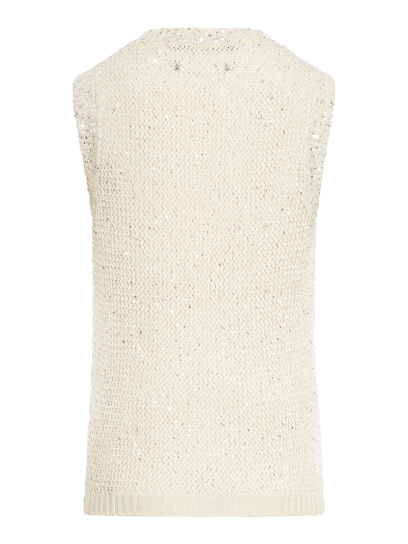-crew neck -sleeveless -sequins -perforated -ribbed hem