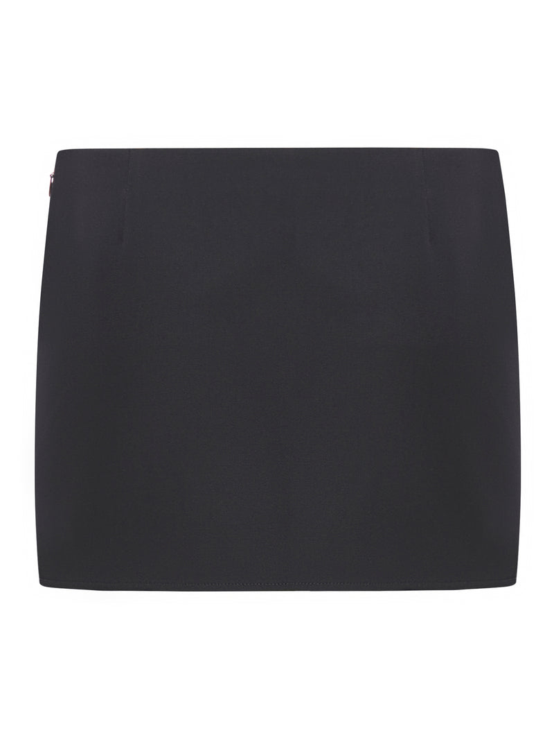 -Mini skirt in grain de poudre wool. -4G Liquid silver finish metal detail on the front. -Invisible zip closure on the side. -Fake front pocket