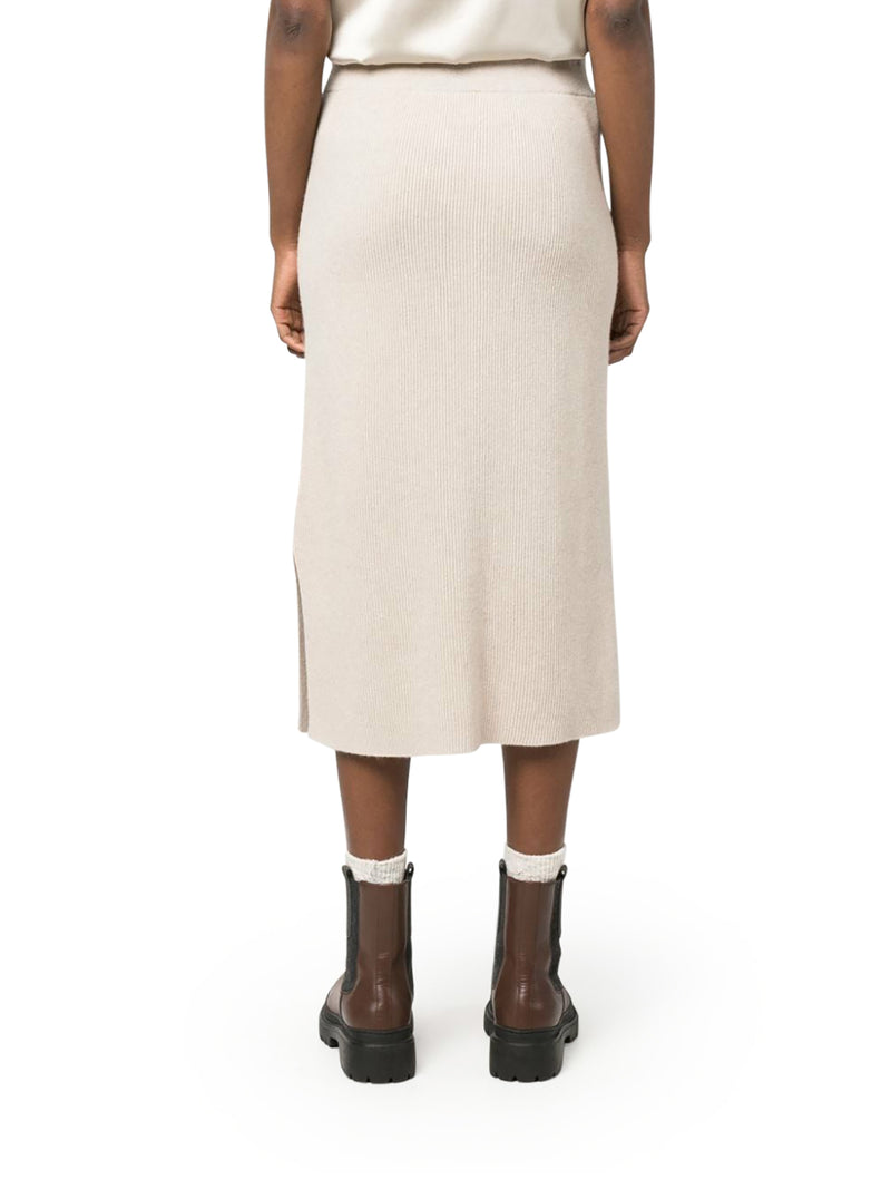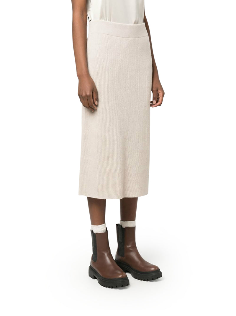 -Light beige -Knitted design -Ribbed knit -Ribbed waistband -Mid-rise -Centre back vent -Mid-length