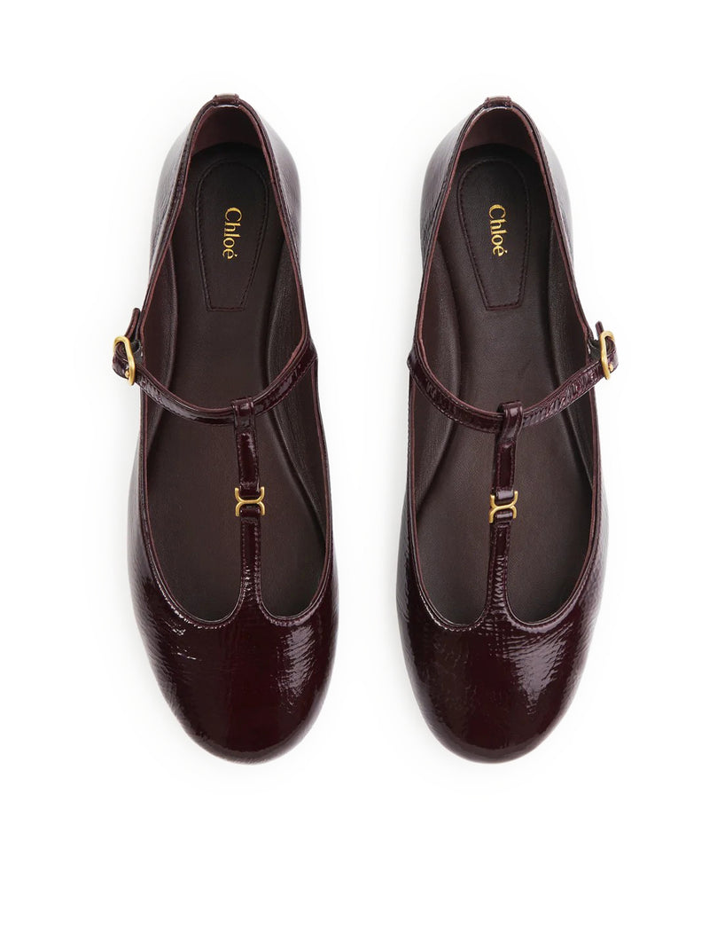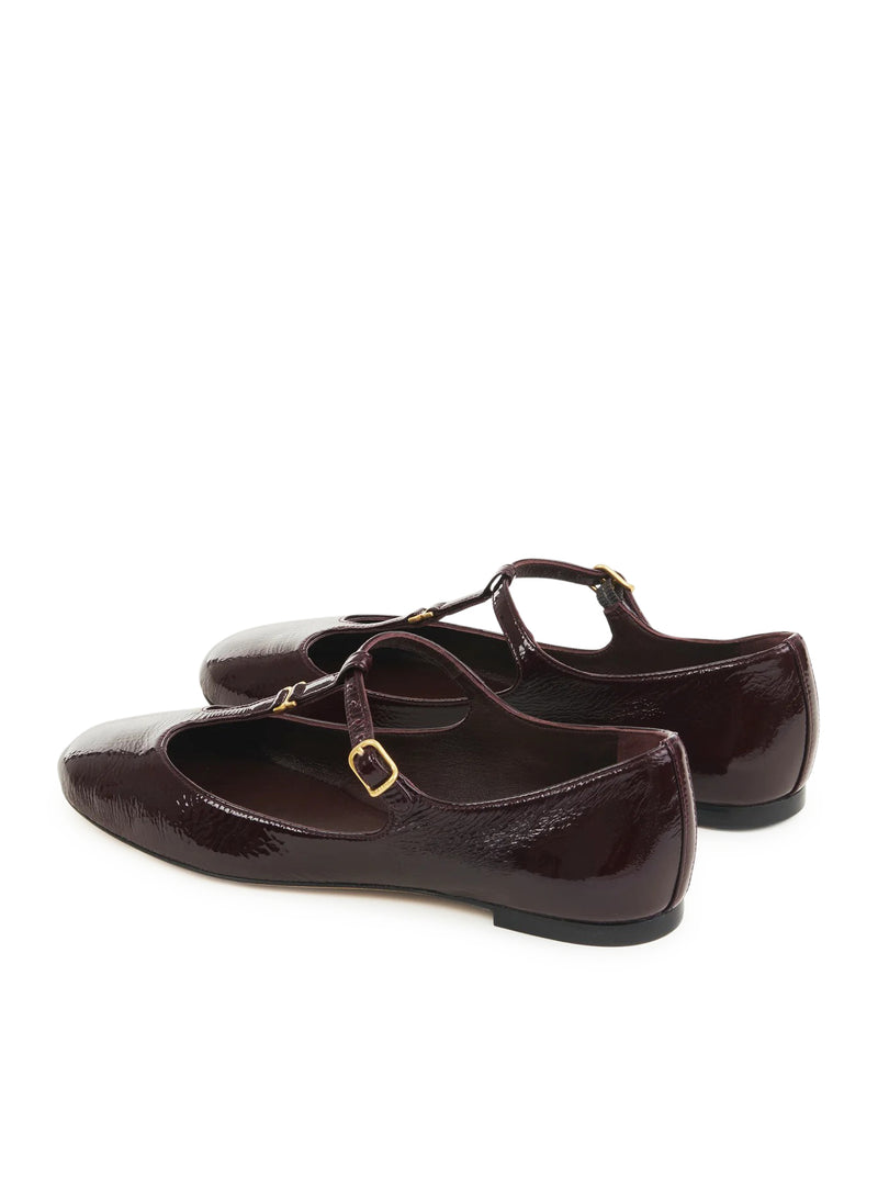 -Flat ballerinas -Upper: patent goat leather -Insole: sheepskin -Main lining: sheepskin -Sole: cowhide -Exact fit, European size - Buckle closure - Chocolate Brown interior