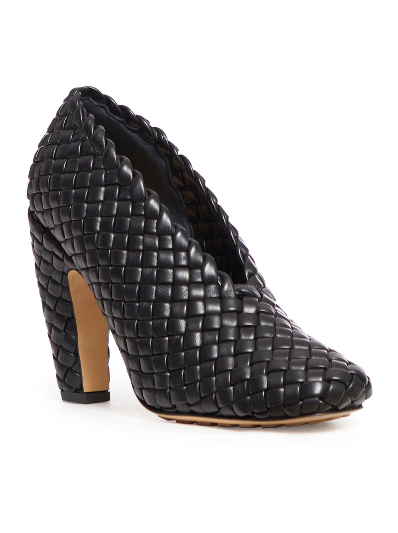 - 100% leather - Padded peep-toe mules in Intrecciato leather - Biodegradable leather sole with bio-based rubber injection - 10 cm heel