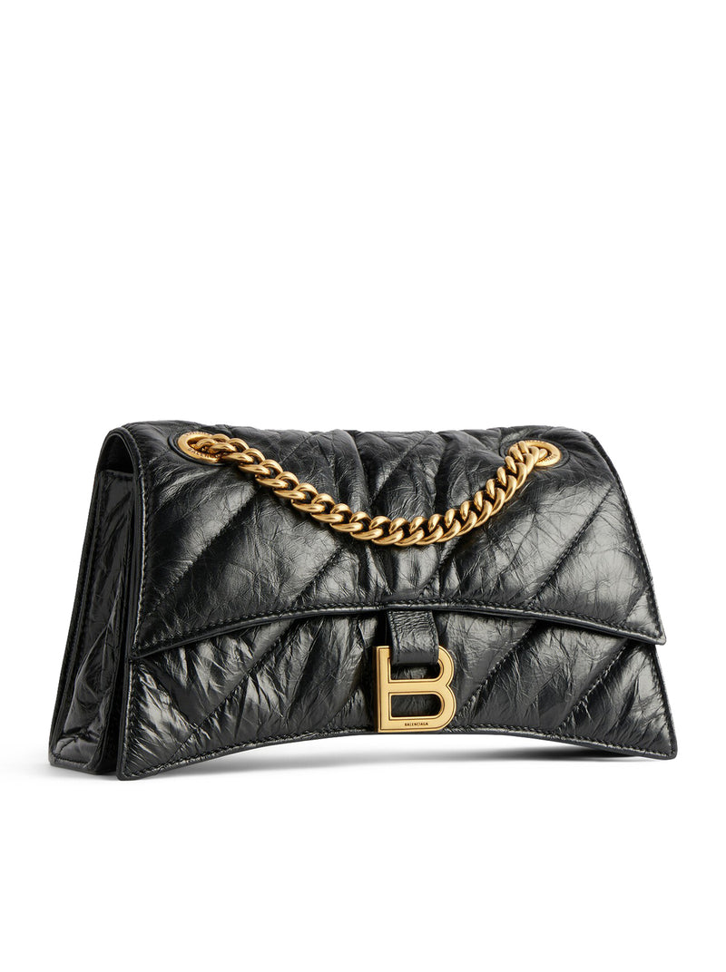 - Quilted crush calfskin - Chain shoulder bag - Curved base - Chain shoulder strap (49.8 cm) - Antique gold B logo hardware - Studded magnetic closure - 3 compartments - 1 interior zip pocket - 1 interior flat pocket - Lambskin nappa lining - Wipe with a soft cloth - Dimensions: L 24.9 x H 15 x D 7.9 cm