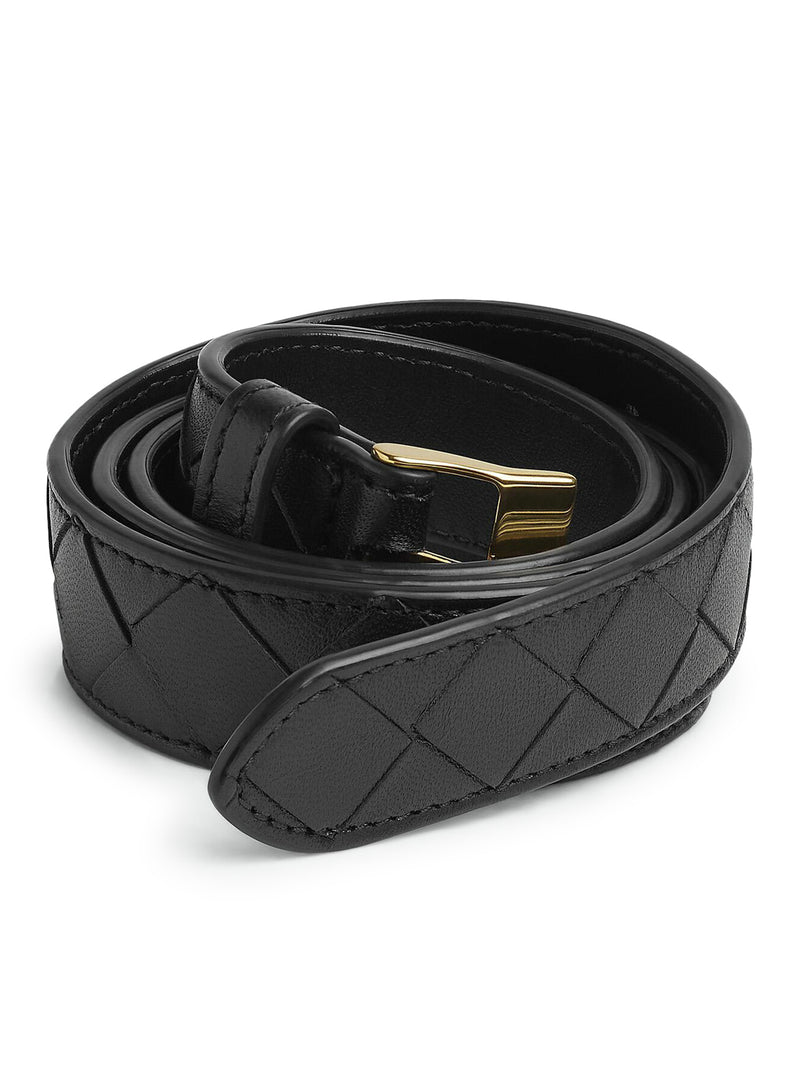 ? Prong closure Material: Lambskin ? Interior: Calfskin ? Color: Black ? Metal accessories: Musa brass finish ? Height: 2.5 cm ? Depth: 0.5 cm
