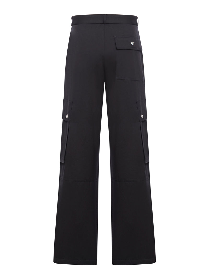 -waist belt loops -two side welt pockets -one patch pocket with flap on the back -two cargo pockets with drawstring -two darts per leg at knee height -wide leg -hem with drawstring