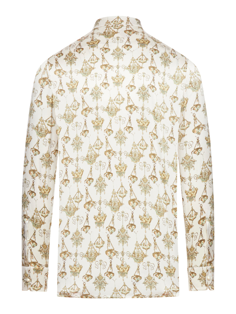 -Long-sleeved silk satin shirt -Classic collar -Chandelier print -Pearl button fastening -Pearl button cuffs -One pearl with engraved 4G logo -Two flap pockets on the chest -Side vents -Classic fit