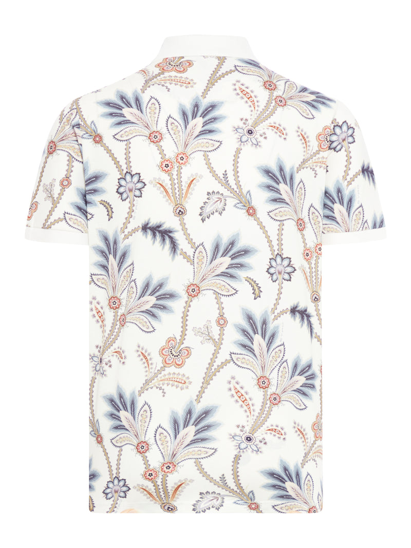 -classic collar -cotton botanical print -button fastening -embossed logo on the back -short sleeves -straight hem
