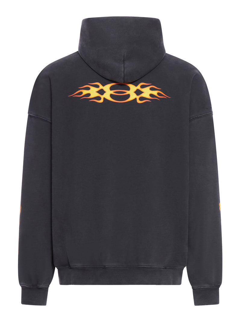 -hood without drawstring -print on the front -long printed sleeves -print on the center back -one patch pocket on the front -destroyed effect