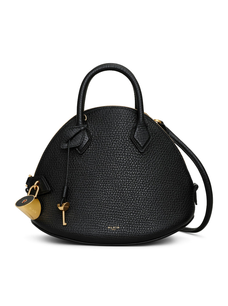 -Small structured handbag -Functional lock and key -Curved bottom -Zip closure -Can be carried by hand or over the shoulder thanks to the removable shoulder strap