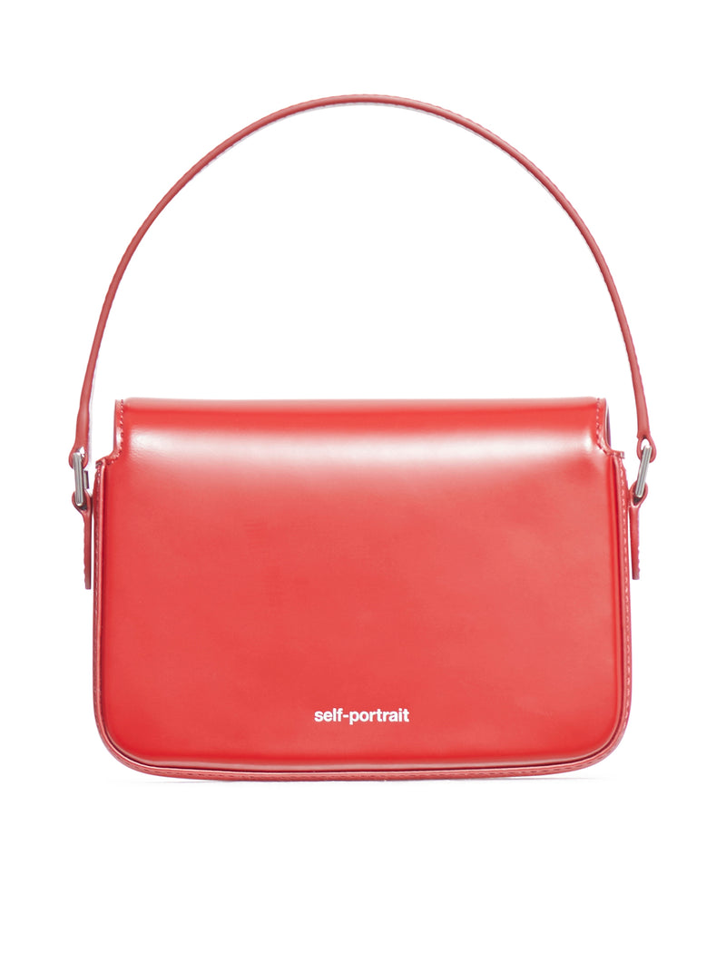 -calfskin -smooth grain -top handle -removable shoulder strap with chain -ruffle and rhinestone applique -flap on the top -internal bellows pocket -silver-colored details -hidden magnetic closure