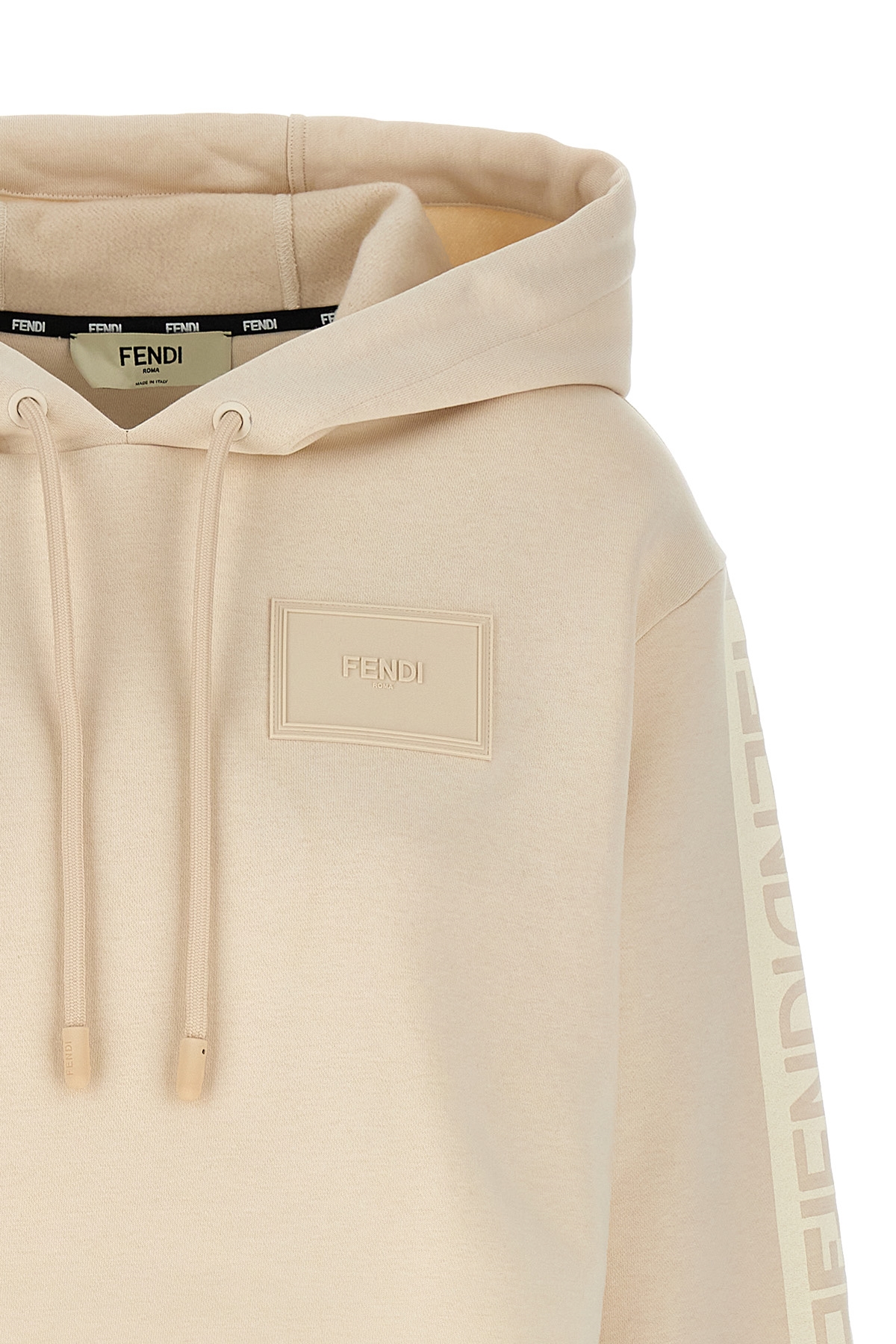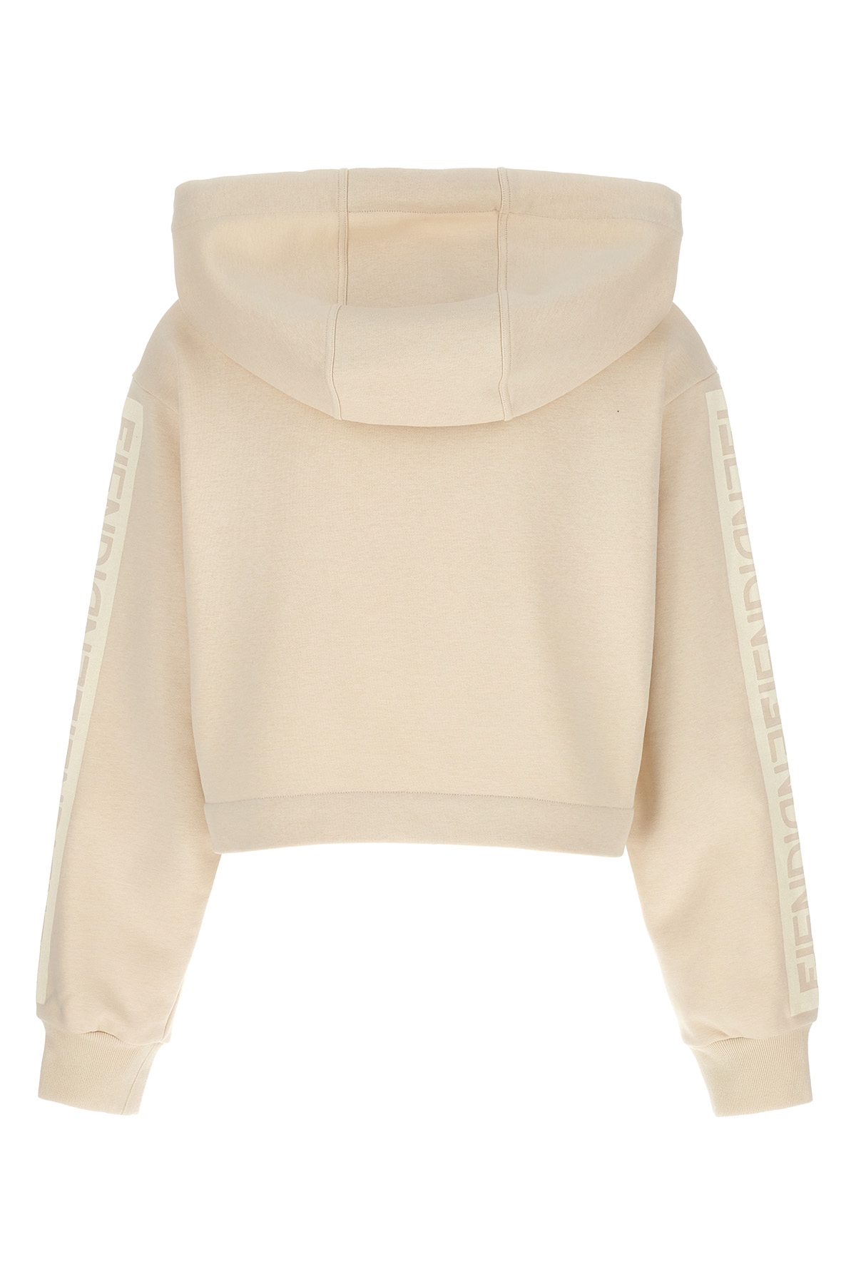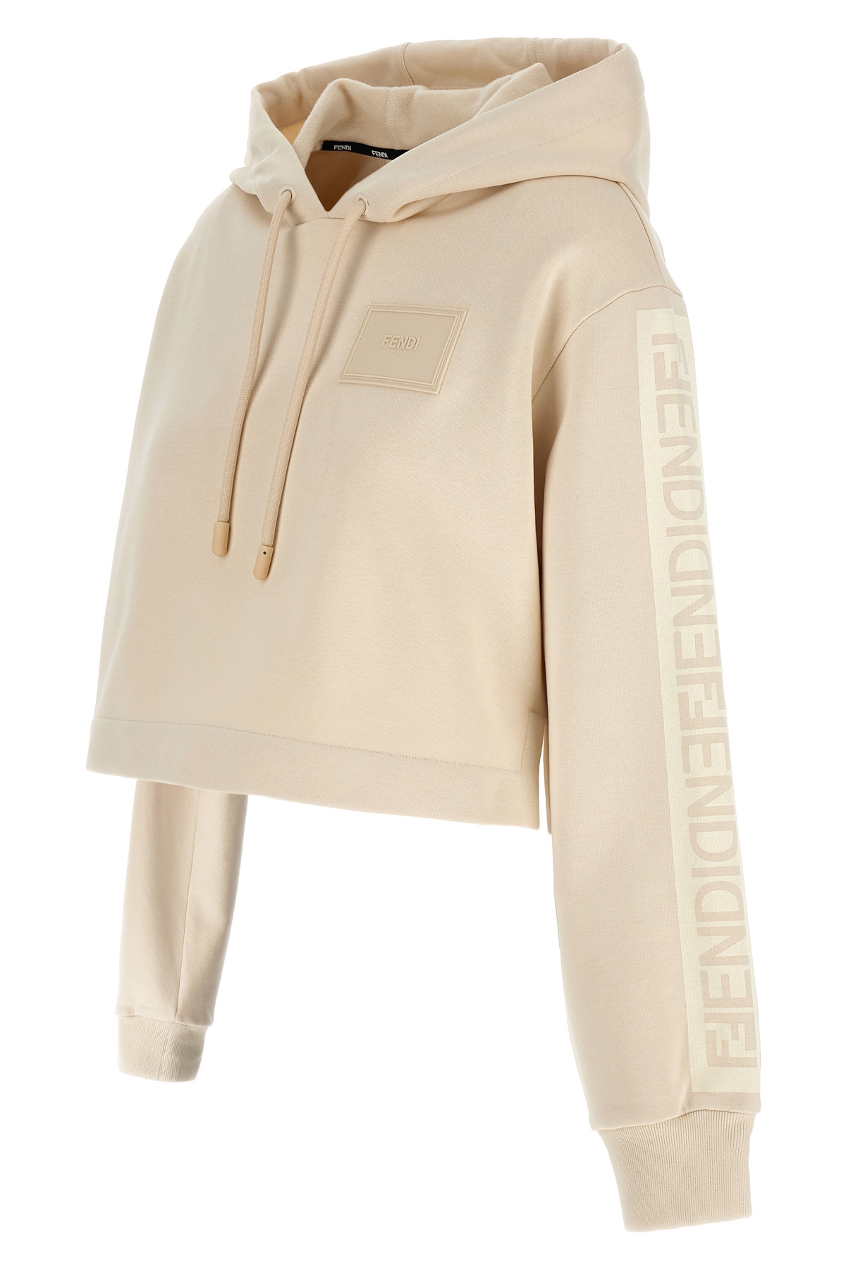 Cropped hoodie in cotton blend, bands on sleeves with 'Fendi Mirror' print, front rubber logo, long sleeves with cuffs.