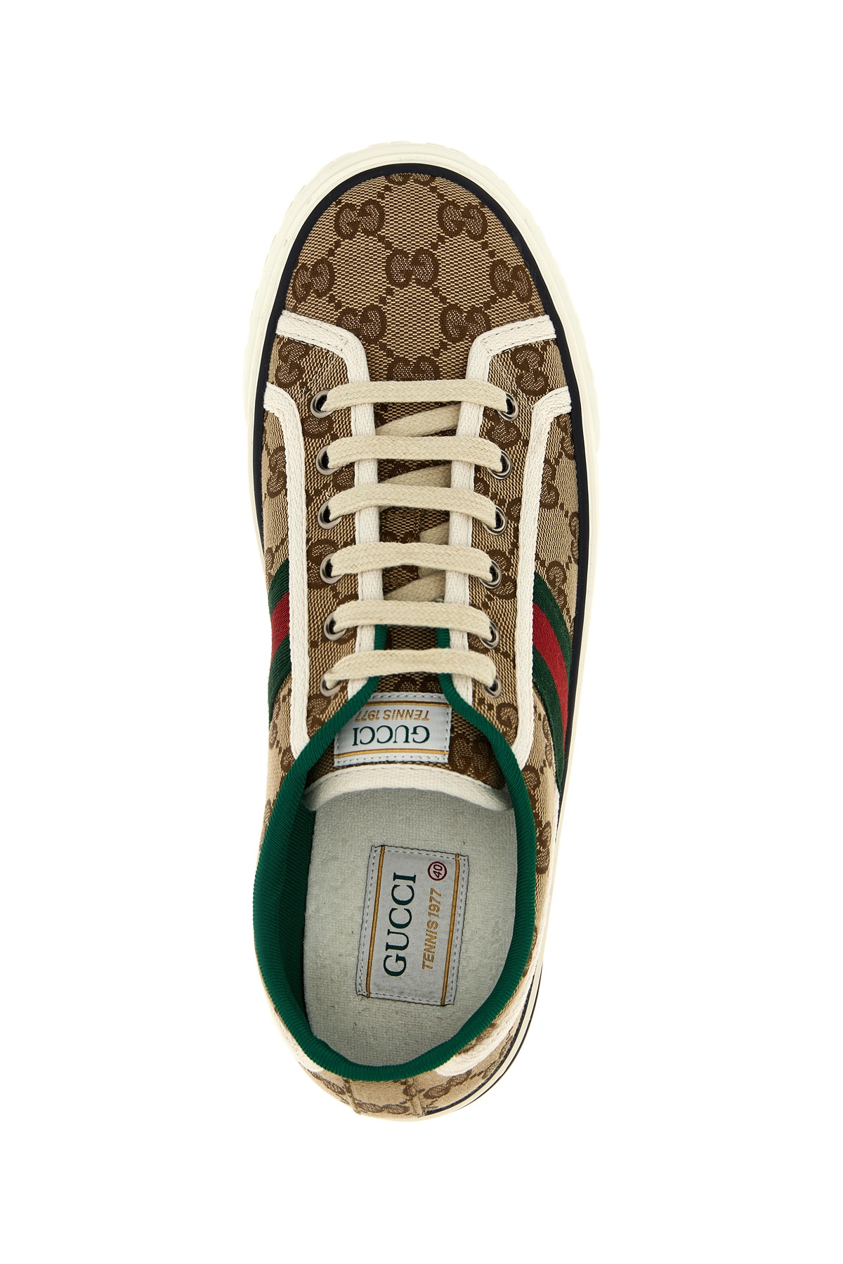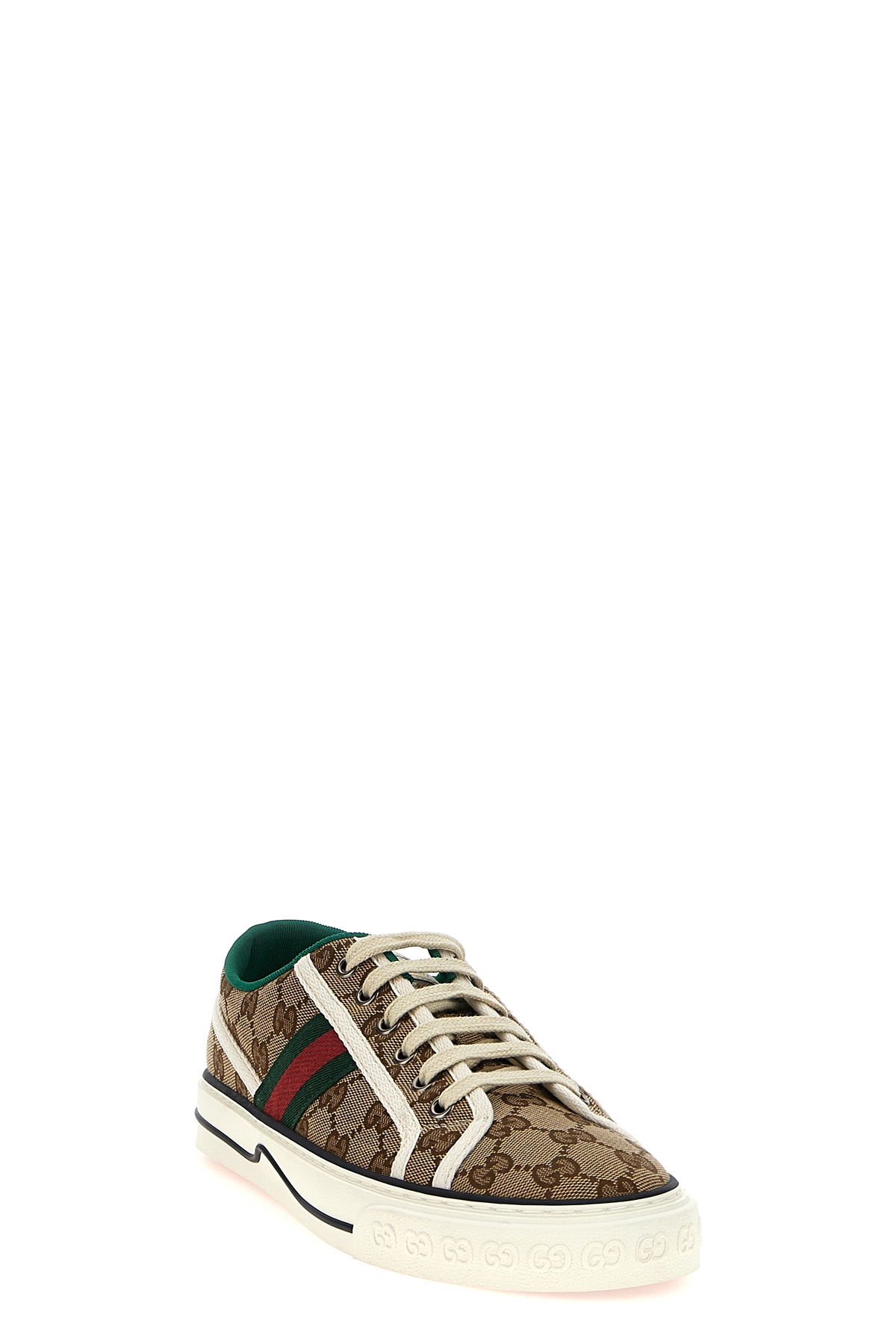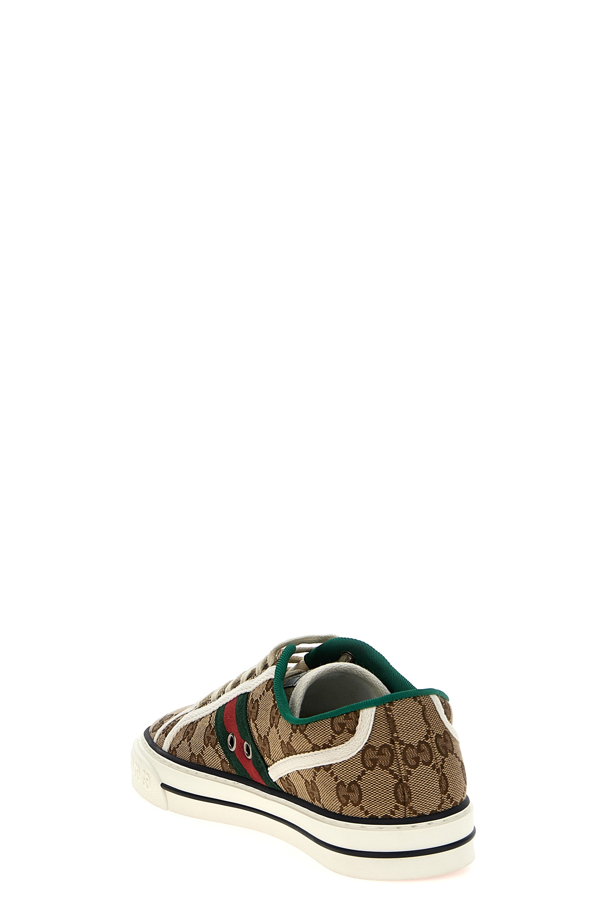 'Gucci tennis 1977' all-over logo canvas sneakers, featuring contrast piping and a web band. Featuring a lace up and a rubber sole.