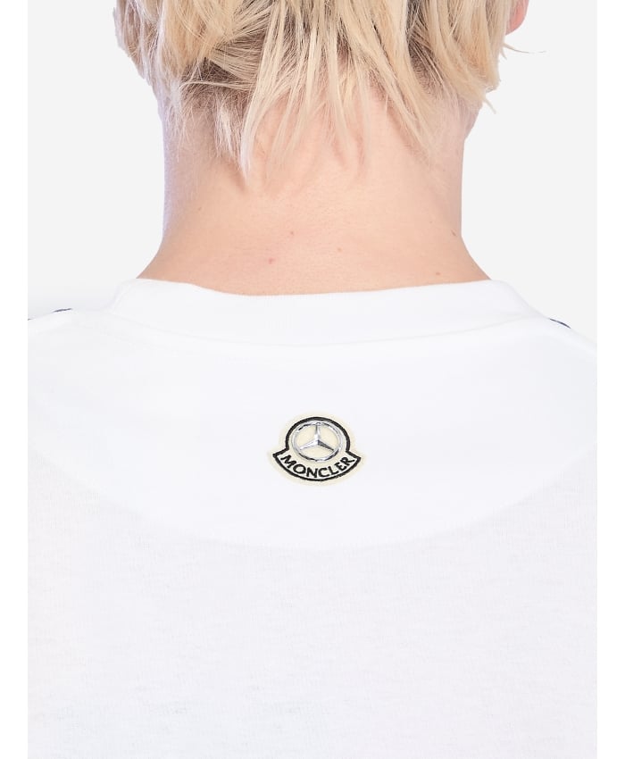 Moncler x Mercedes-Benz by Nigo white cotton jersey short-sleeve crew-neck t-shirt with a logo and car print on the front. It features a Moncler x