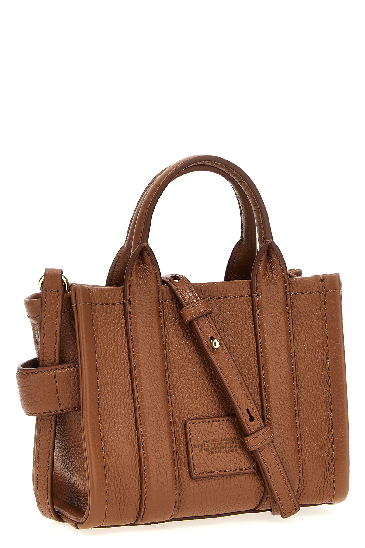 'The Leather Crossbody Tote' crossbody bag in full-grain leather with front embossed logo, double fixed handle, zip closure, adjustable and removable shoulder strap.