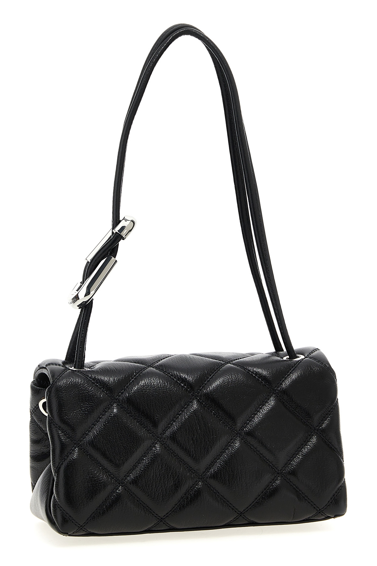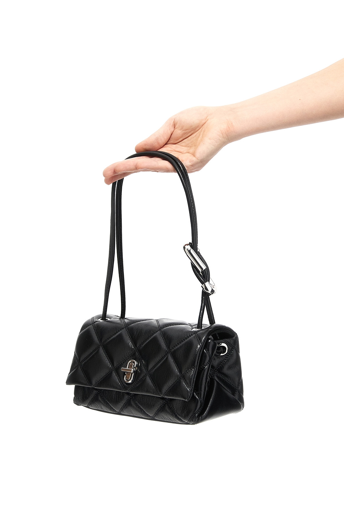 The Quilted Mini Dual' quilted full-grain leather shoulder bag with a Stam-inspired puff texture, metal flap closure, and sliding handle.