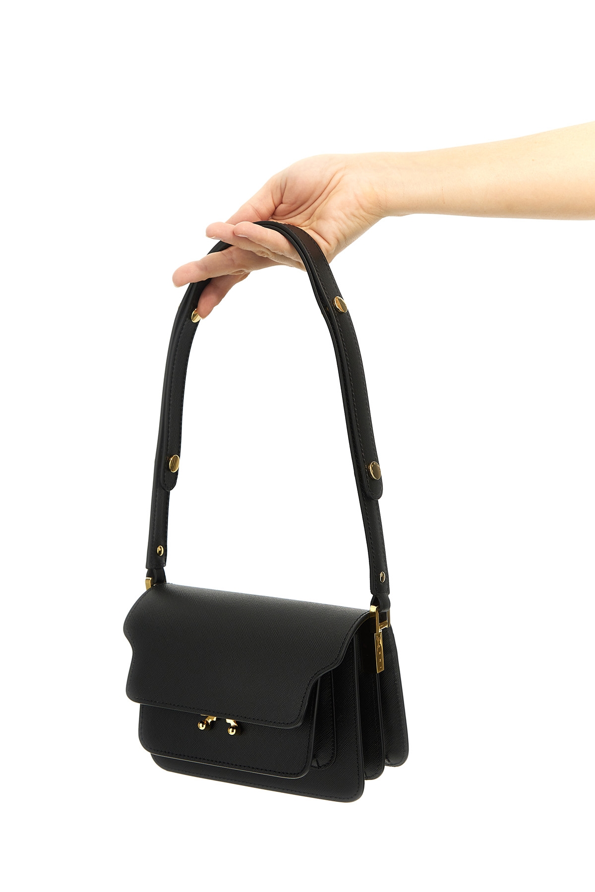 Mini 'Trunk' leather shoulder bag with metal closure, adjustable shoulder strap.