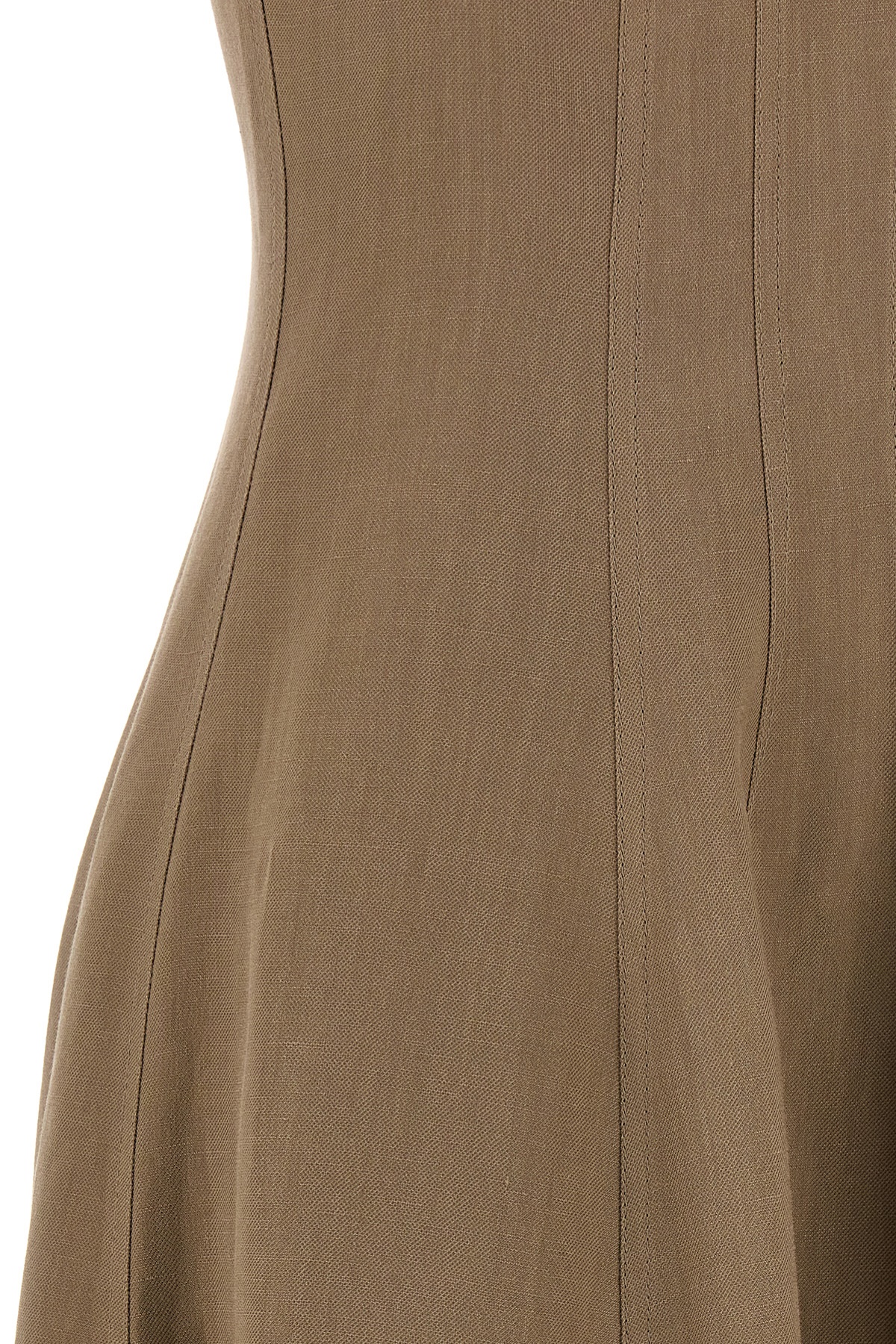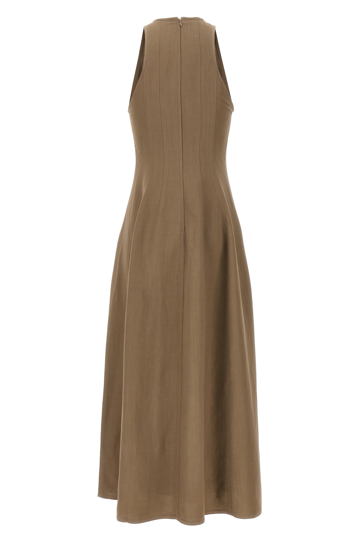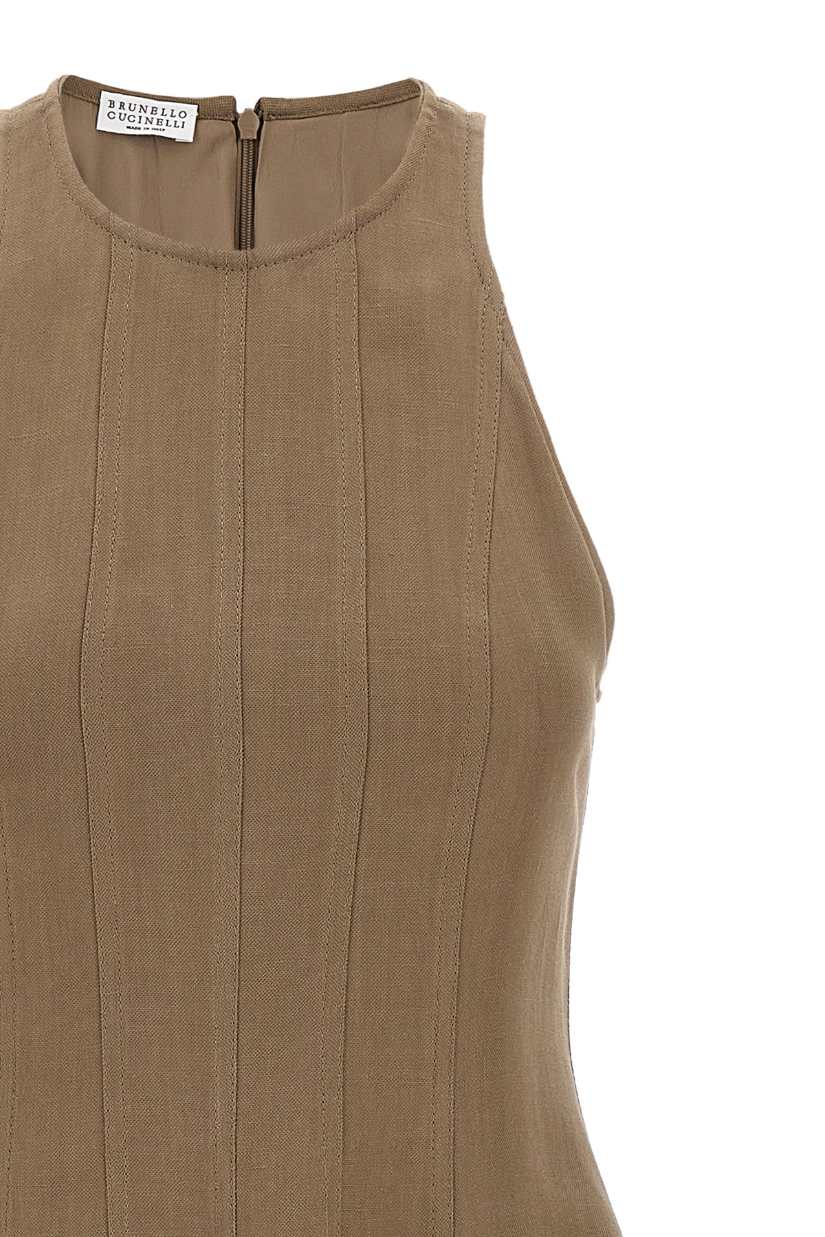 Sleeveless dress in viscose and linen blend with A-line silhouette, crew neck, back zip closure, petticoat.