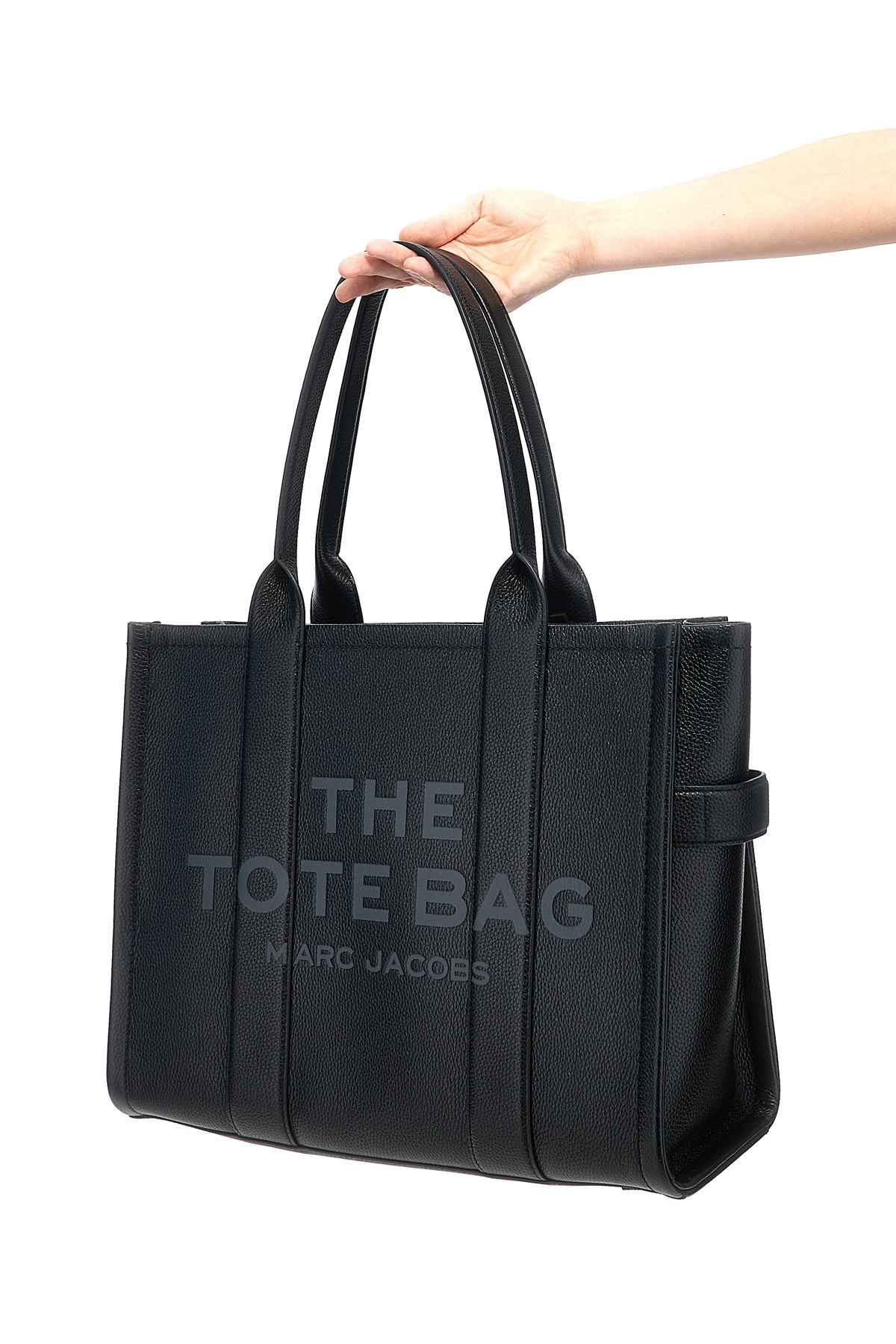 The Leather Large Tote' full-grained leather shopping bag with top zipper closure and a top handle.